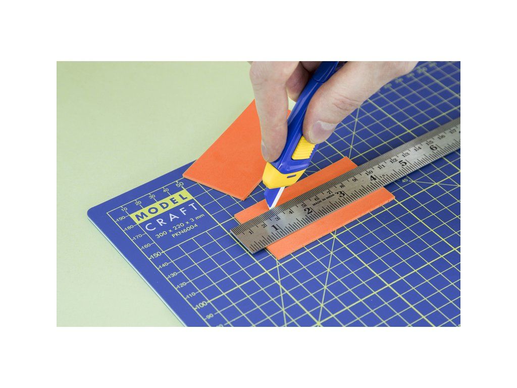 Modelcraft nůž s keramickou čepelí je ideální použít na karton, papír, fólie, tenký plast, balzu apod. Pevná keramická čepel má zvýšenou bezpečnost, nekoroduje, není vodivá a vydrží desetkrát déle než tradiční ocelové čepele. 2 délky čepele 15mm a 20mm. Rozměry 95mm x 27mm x 18mm, hmotnost 16g.