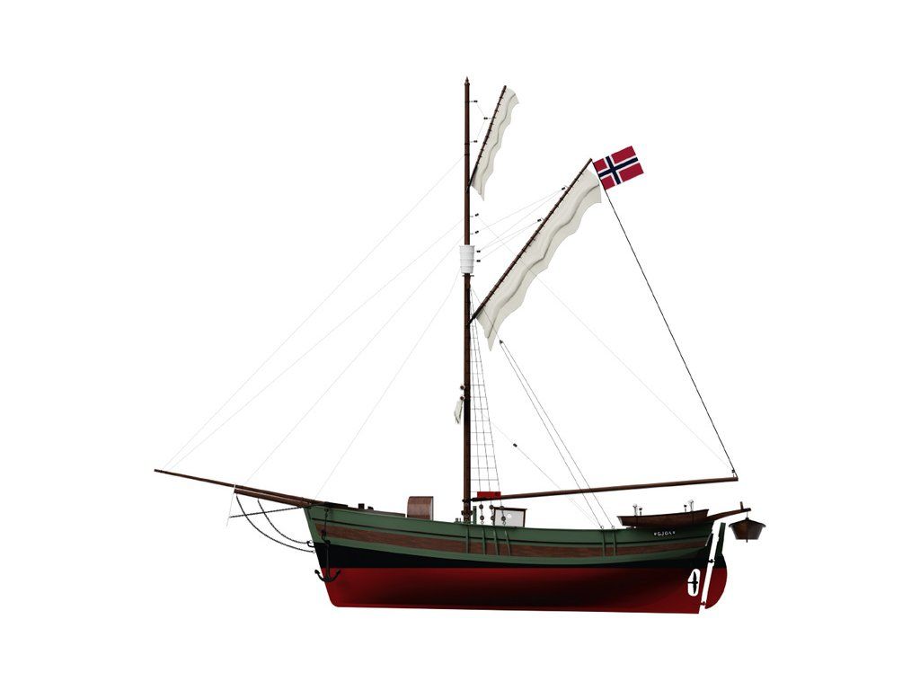 Stavebnice neplovoucího modelu lodi výzkumné plachetnice Gjoa, v měřítku 1:50. Délka modelu lodi je 630mm, stavba převážně ze dřeva s doplňky z 3D tisku, součástí je obrázkový stavební návod. Gjøa je norská plachetnice typu Hardangerjakt se kterou plul Roald Amundsen.