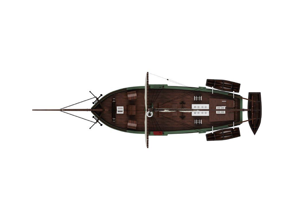 Balení obsahuje laserem řezané překližkové díly na několika deskách, maketové doplňky 3D tisku (resin), dřevěné a plastové díly, plachtovinu, lanoví, obrázkový stavební návod EN.