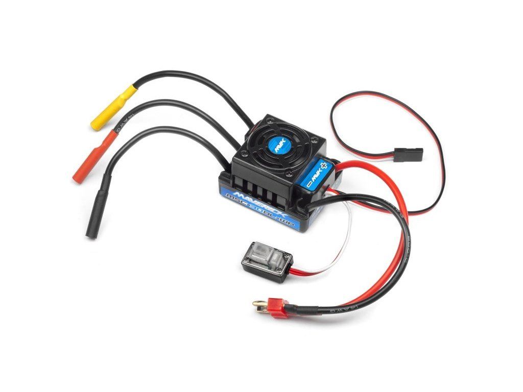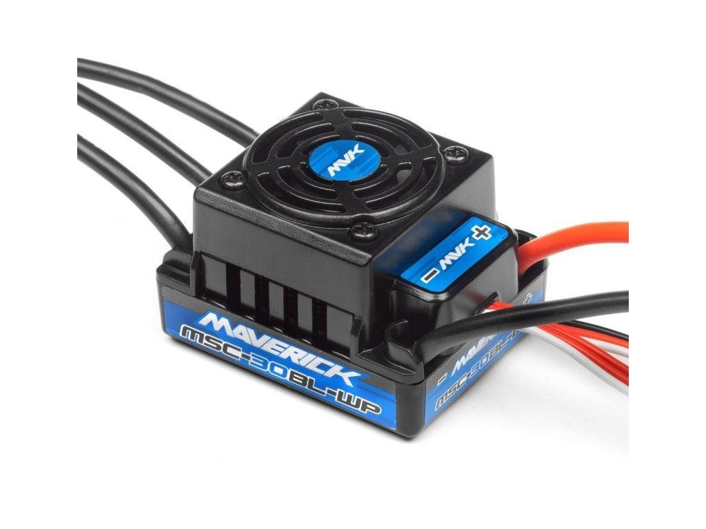 Regulátor otáček používaný v modelech Maverick 1/10 Strada a Quantum Brushless.Programovatelný. Trvalý proud 45A(špičkový 220A), napájení 5-9NiCD/2-3 LiPo článků, hmotnost 90g, BEC 6V/2A.Doplňkové parametry