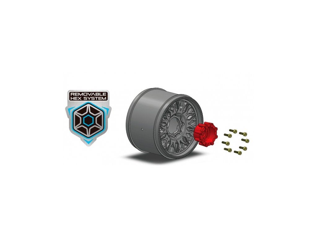 Systém odnímatelných hexů je nová funkce, která vám umožní vybrat si z různých středů, tak aby kola pasovala na vaše RC auto. Ty jsou součástí balení a lze je snadno nasadit a sejmout pomocí přiložených šroubků.