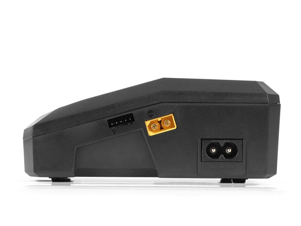 Nabíječ je v obou kanálech vybaven výstupními zásuvkami XT60 a univerzálními zásuvkami pro servisní konektory JST-XH umožňující přímo zapojit silové kabely akumulátoru a servisní konektory JST-XH sad 2-4S – pokud používáte sady s konektory XT60 a JST-XH, obejdete se zcela bez nabíjecích kabelů a adaptérů.