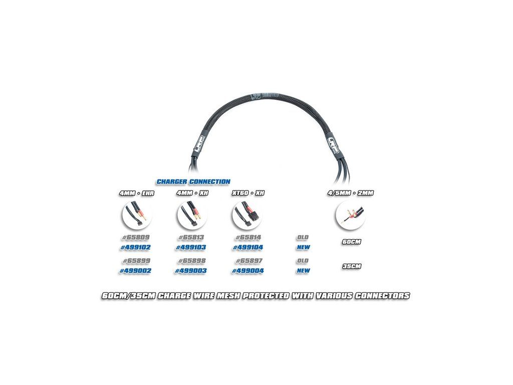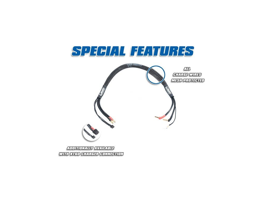 Pro ochranu a spolehlivý provoz jsou nabíjecí vodiče opatřeny ochrannou síťkou a smršťovací bužírkou na obou stranách s potiskem loga LRP.