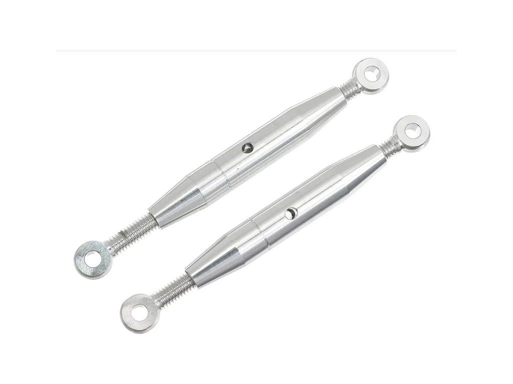 Napínák lanka hliníkový M2,5 L/P. Balení obsahuje 2 kusy. Průměr těla 5mm, délka těla 30mm, Délka koncovky se závitem M2,5 - 20mm, otvor 2mm v očku 5mm.