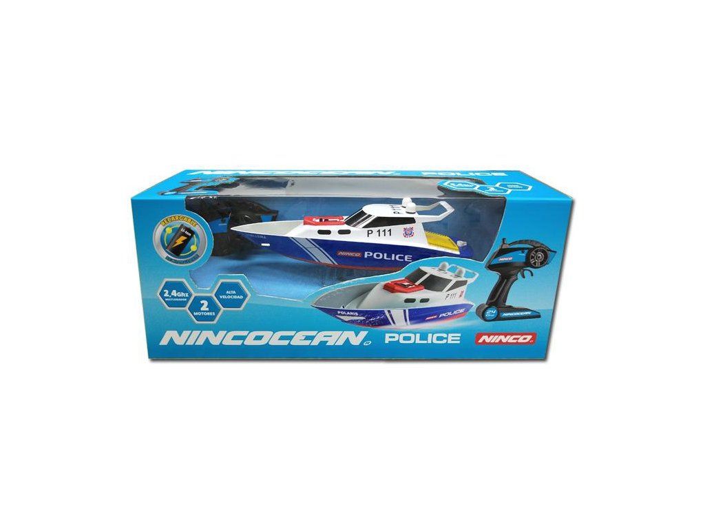 Nová jachta Police od společnosti Ninco. Má propracovaný design v barvách pobřežní policie. Snadné ovládání vhodné pro všechny věkové kategorie, do bazénu i na otevřené vodní plochy. Je dlouhá 34 cm. Volantový vysílač s dosahem 30m. Vestavěný LiIon akumulátor 3,7V 1200mAh a USB nabíječ.