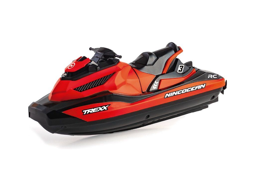 Vodní skútr na dálkové ovládání NINCOCEAN Trexx 2.4GHz RTR. Detailní zpracovaní. Pohon a řízení pomocí dvou motorů s lodními šrouby. Napájení lithiovým akumulátorem 3,7 V 500 mAh, USB nabíječ. Moderní vysílač 2,4 GHz. Doba plavby až 20 minut.