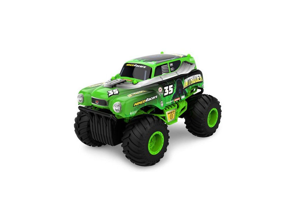 Auto na dálkové ovládání NINCORACERS Intruder v měřítku 1:16. Auto typu Monster Truck má velká gumová kola a klasickou karoserie pro závody Monster Jam. Vysílač 2.4 GHz. Doba jízdy s obsaženou Li-Ion baterií je až 20 minut. Pohodlné nabíjení přes USB nabíječku.