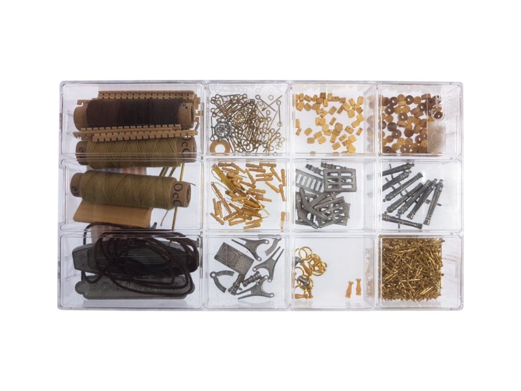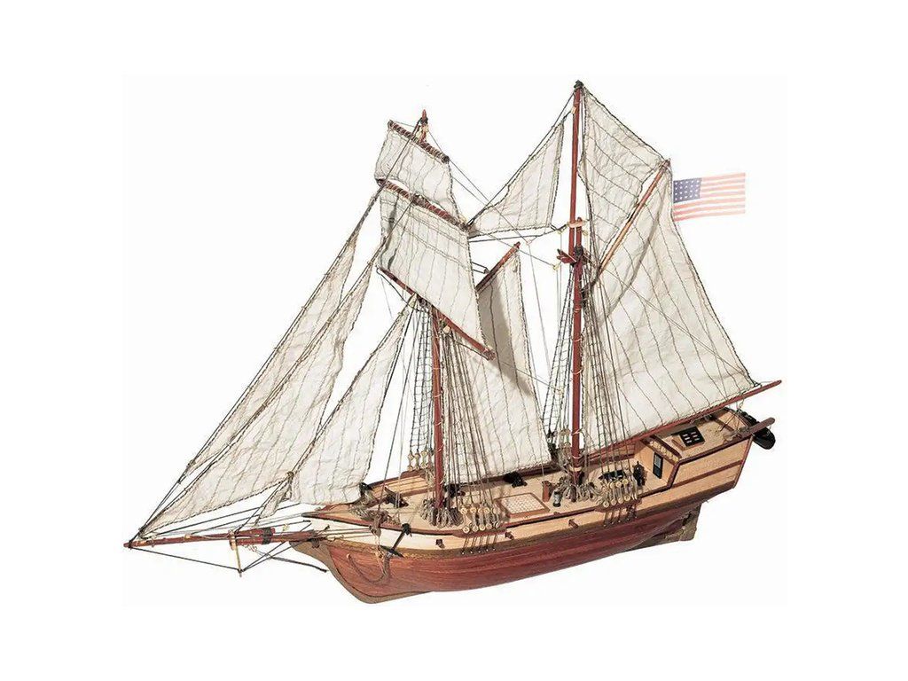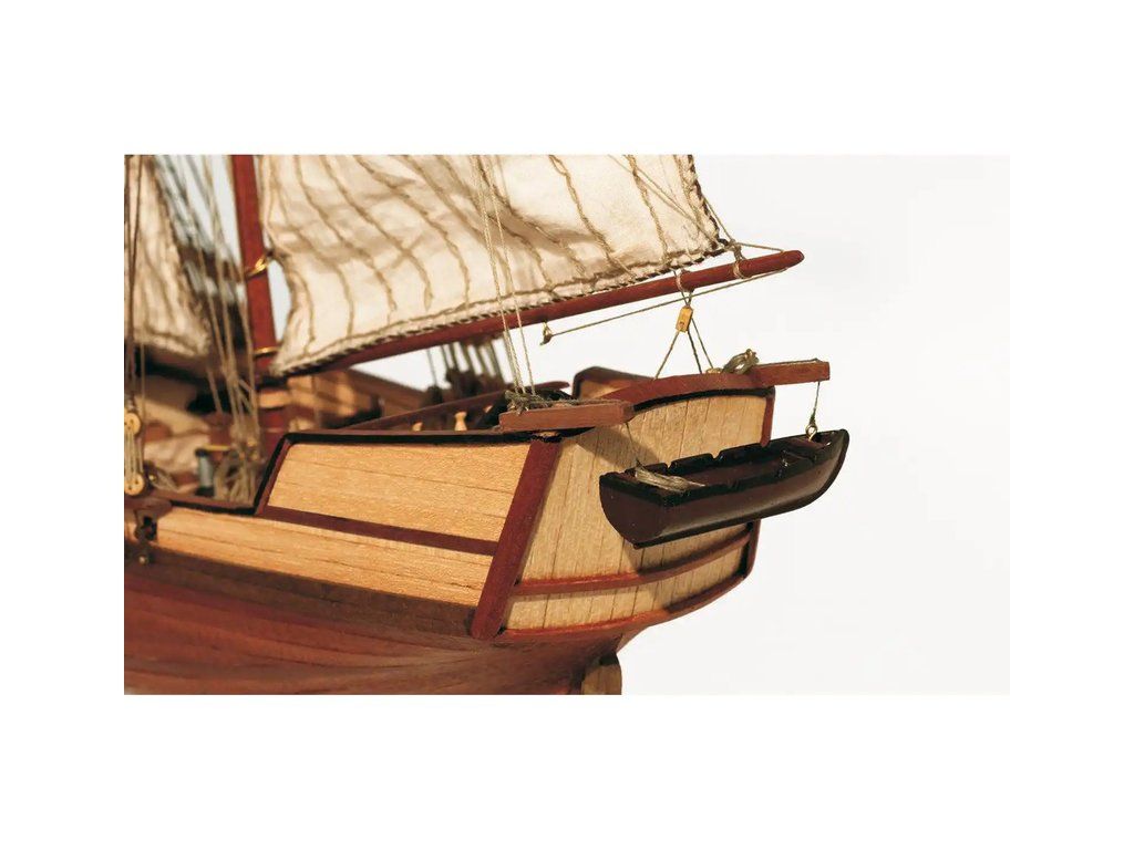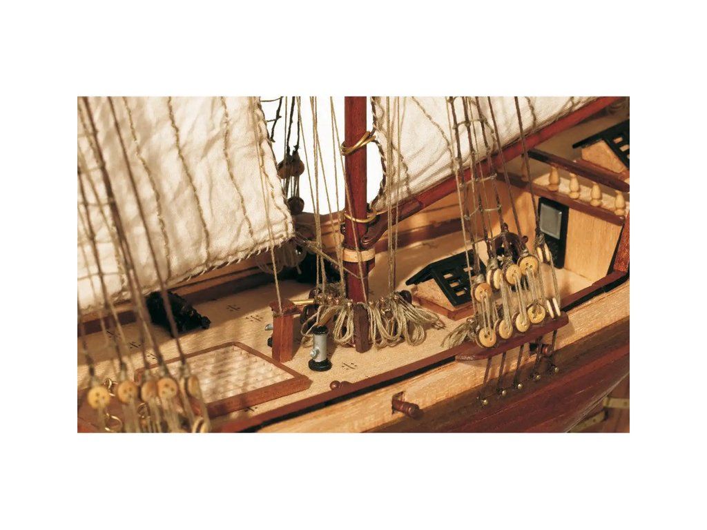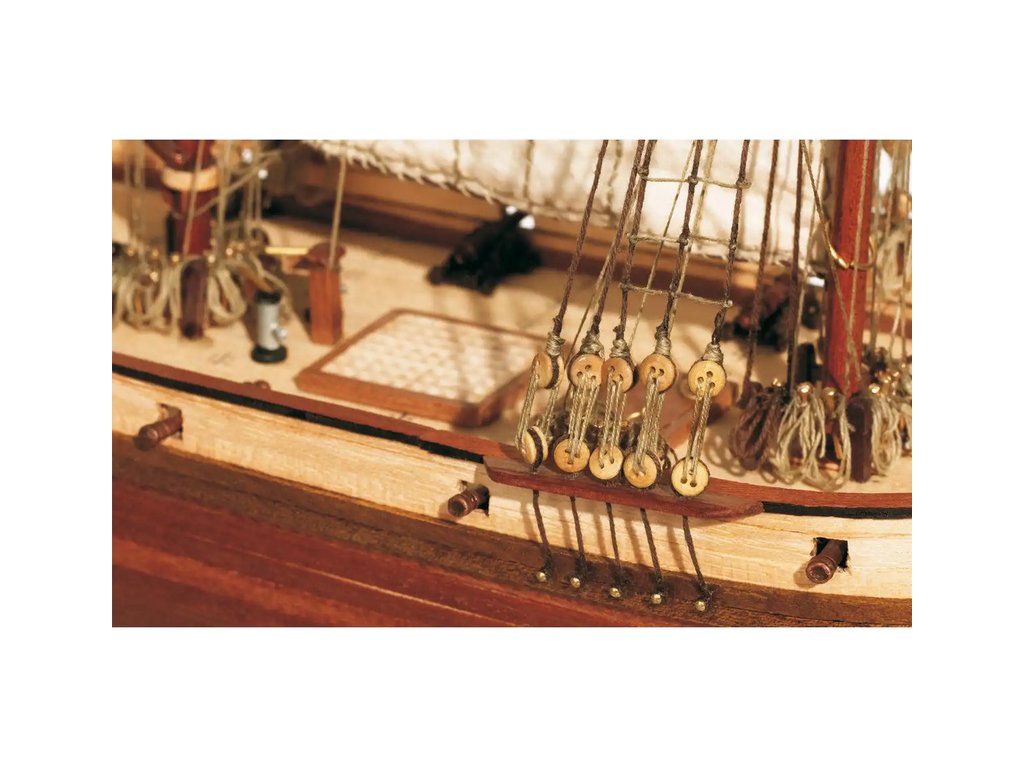 Balení obsahuje laserem řezané dřevěné díly, plaňky, palubu, stožáry, dřevěné díly, kovové odlitky, mosazné díly, lanoví, ušité plachty, stojánek. Návod a stavební plány.