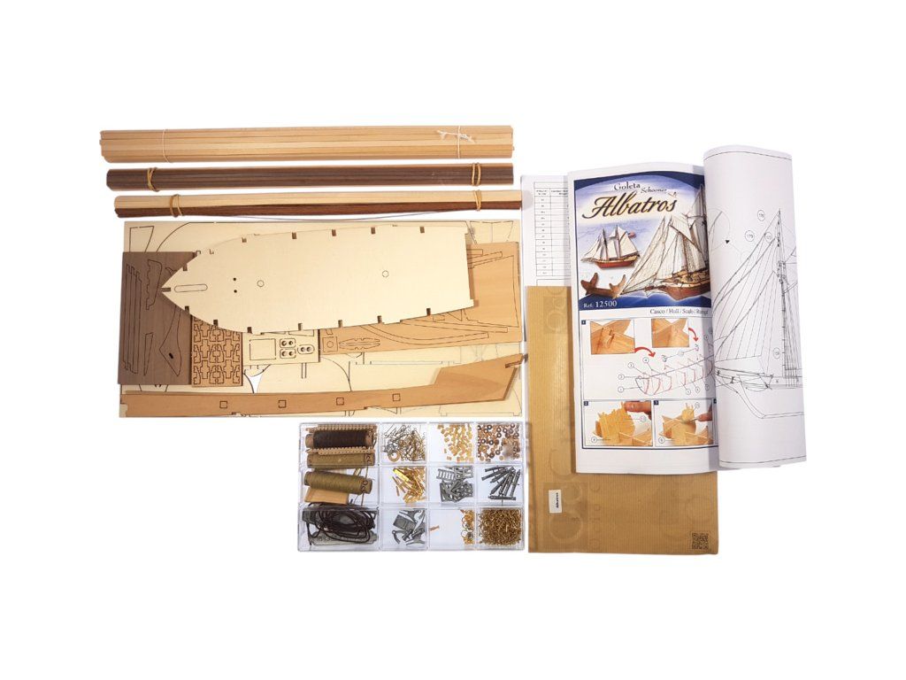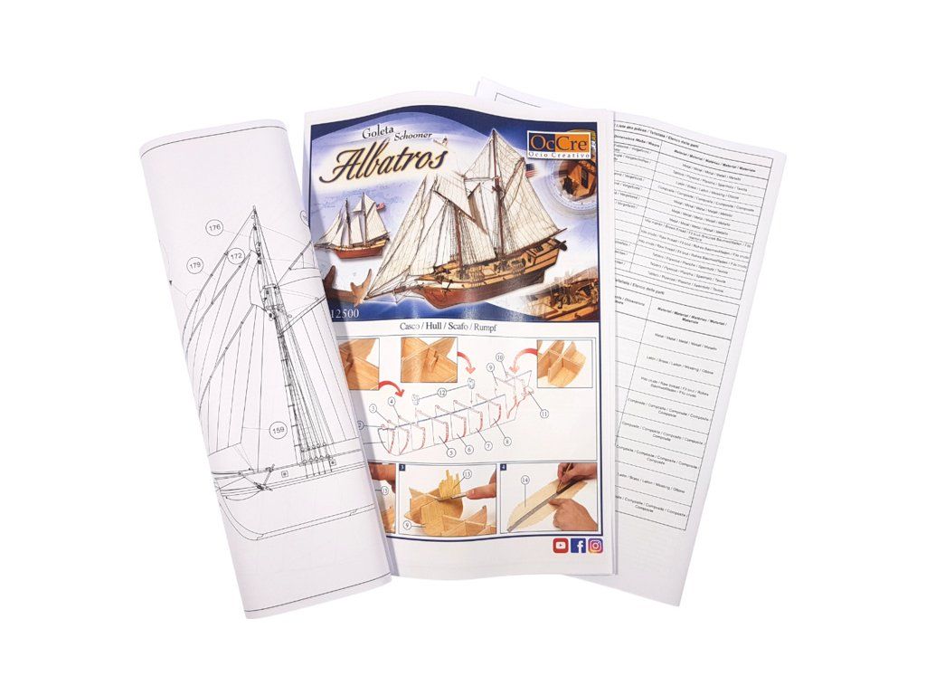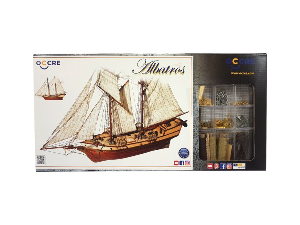 Stavebnice neplovoucího modelu Albatros škuner od značky OCCRE v měřítku 1:100. Elegantní jednodušší model škuneru z 19. století. Stavba převážně ze dřeva, laserem řezané díly, kovové odlitky lanoví a plachty. Výhodou stavebnice je špičkové balení, obrázkový návod krok po kroku, sada výkresů a videotutoriály.