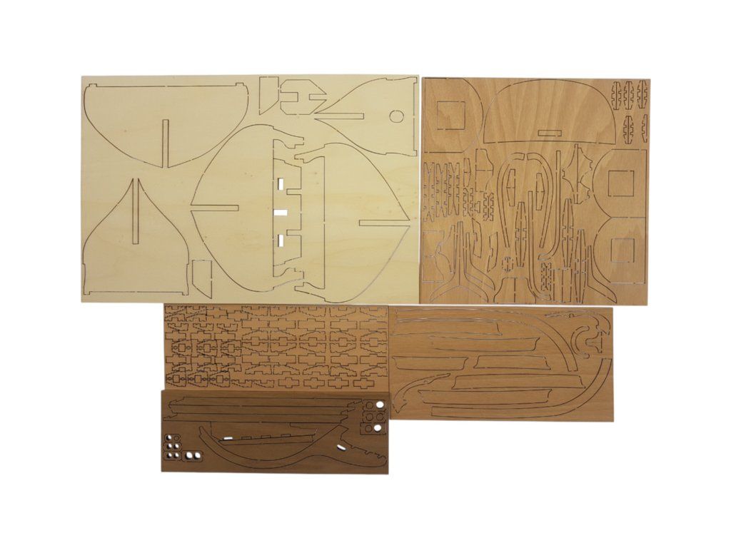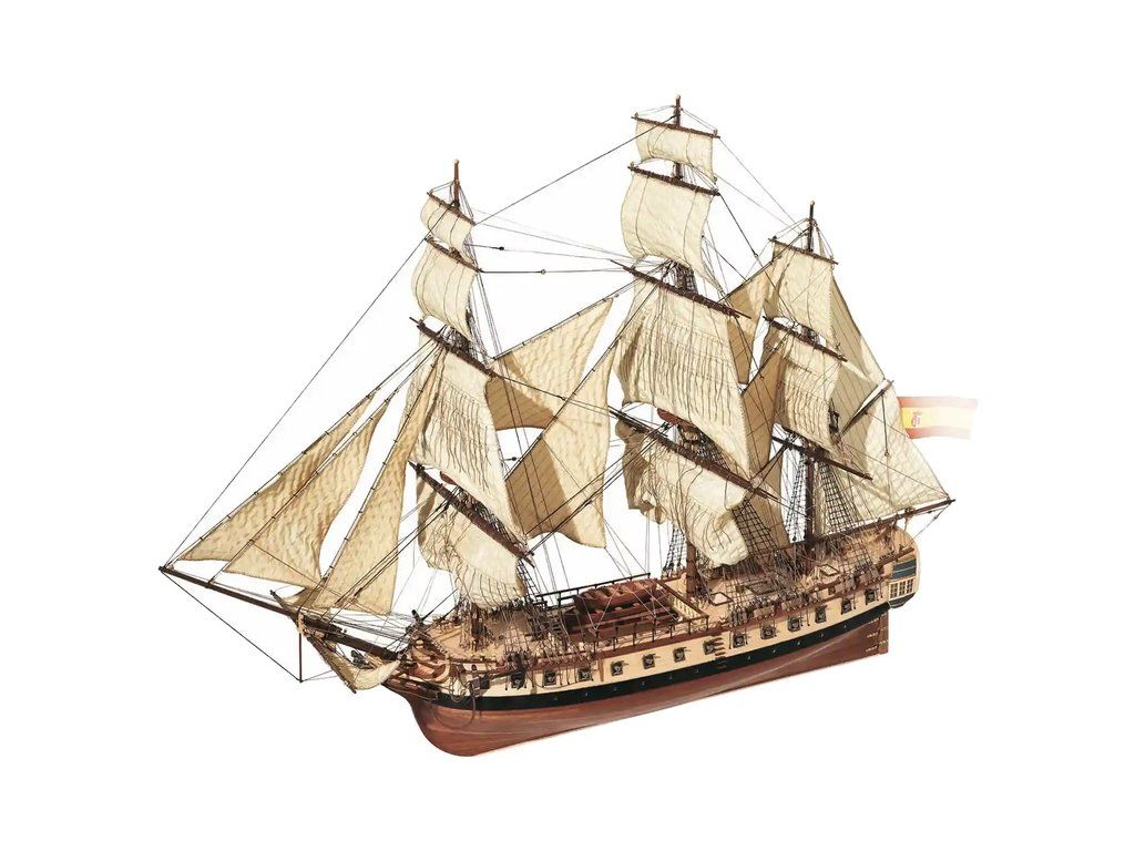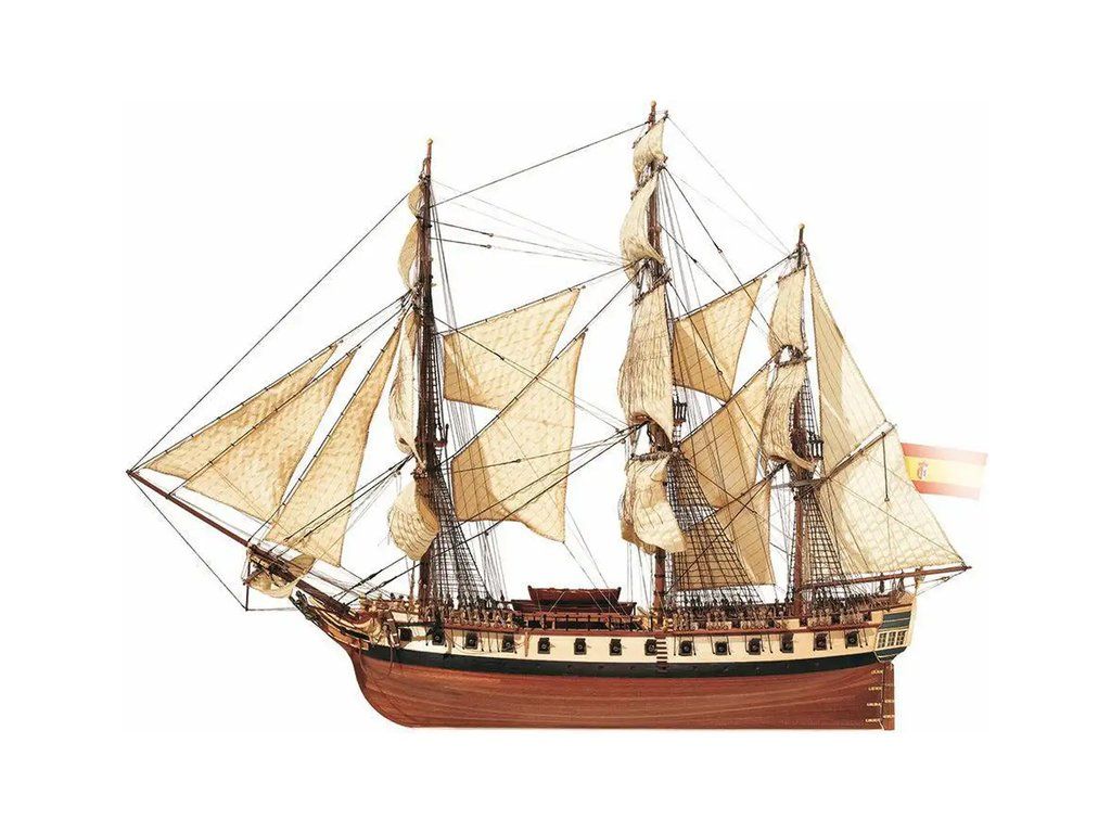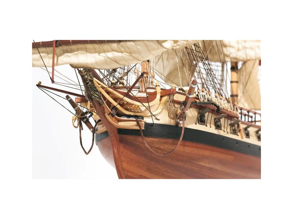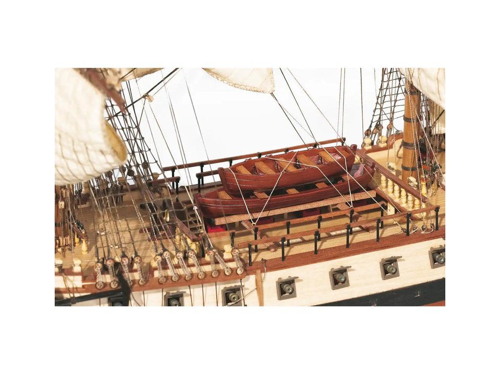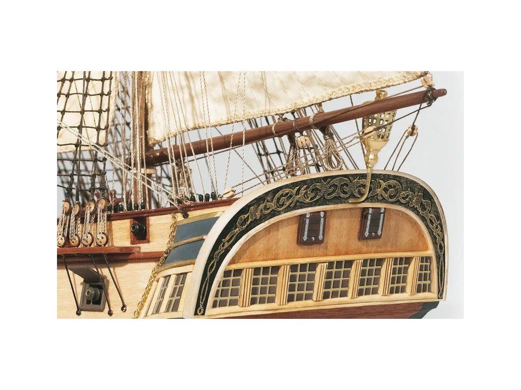 Balení obsahuje laserem řezané plošné dřevěné díly, plaňky, stožáry, frézované dřevěné díly, kovové odlitky, mosazné díly, mosazné fotolepy, lanoví, ušité plachty, vlajku. Návod a stavební výkresy.