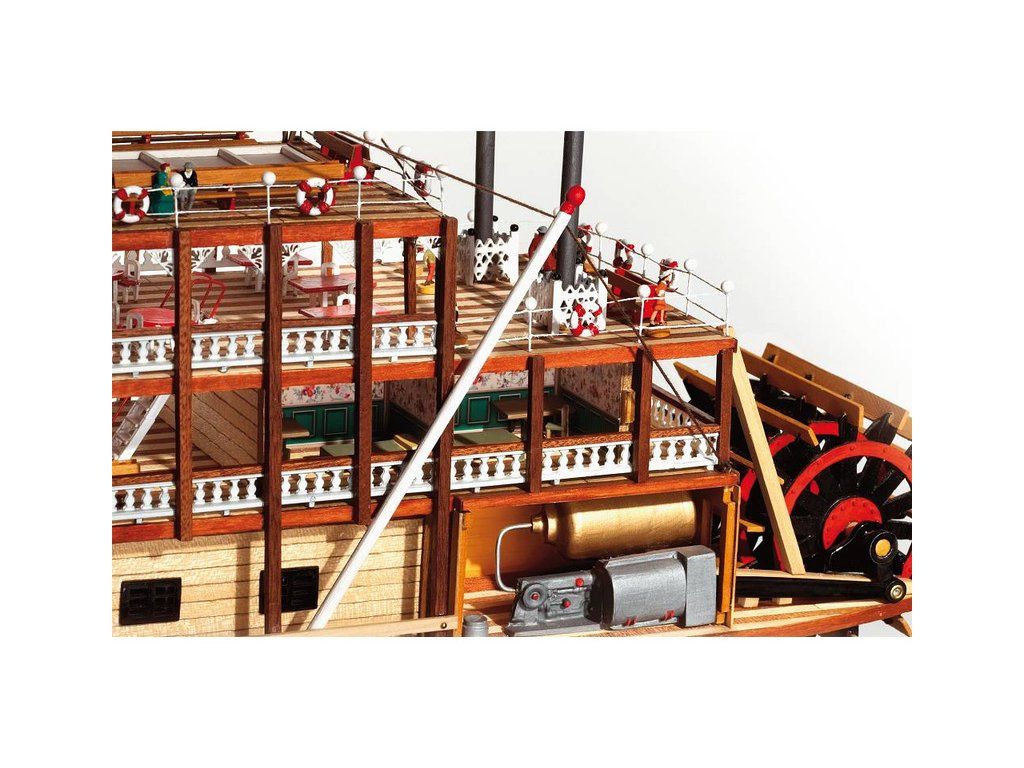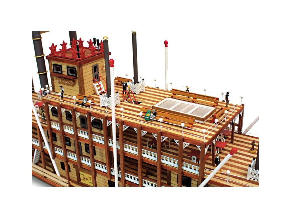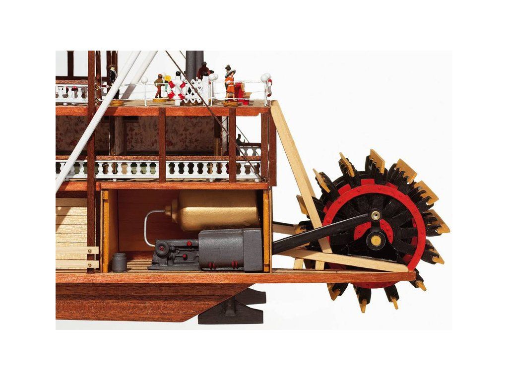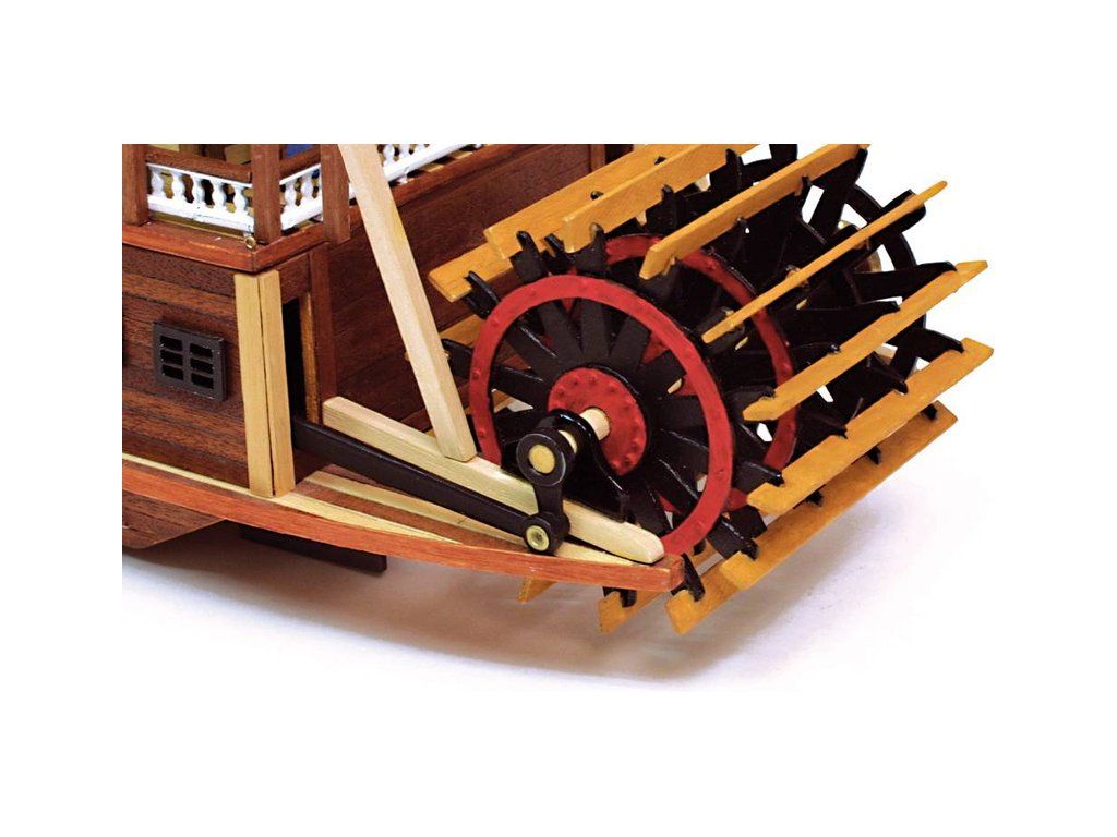 Stavebnice neplovoucího modelu lodi OCCRE Mississippi kolesový parník, v měřítku 1:80. V balení jsou díly pro stavbu - laserem řezané díly, lišty, mosazné fotolepy, lanoví a další. Stavební výkresy a návod.