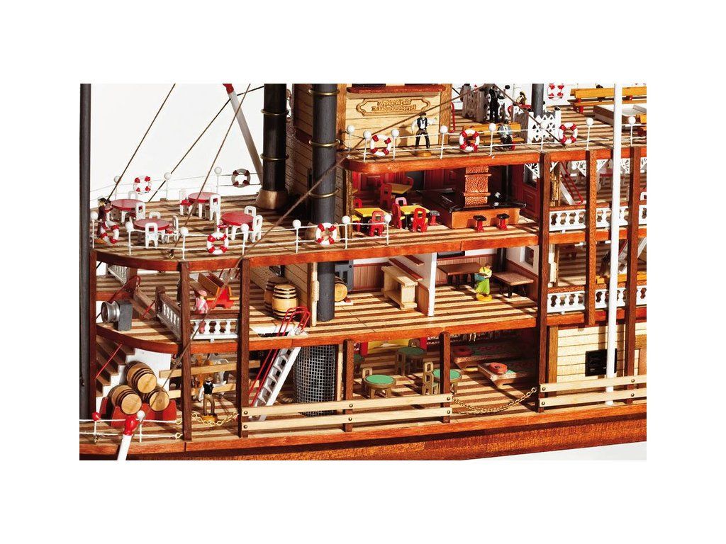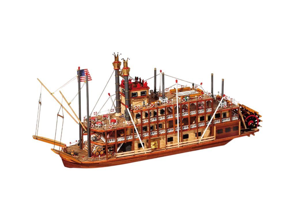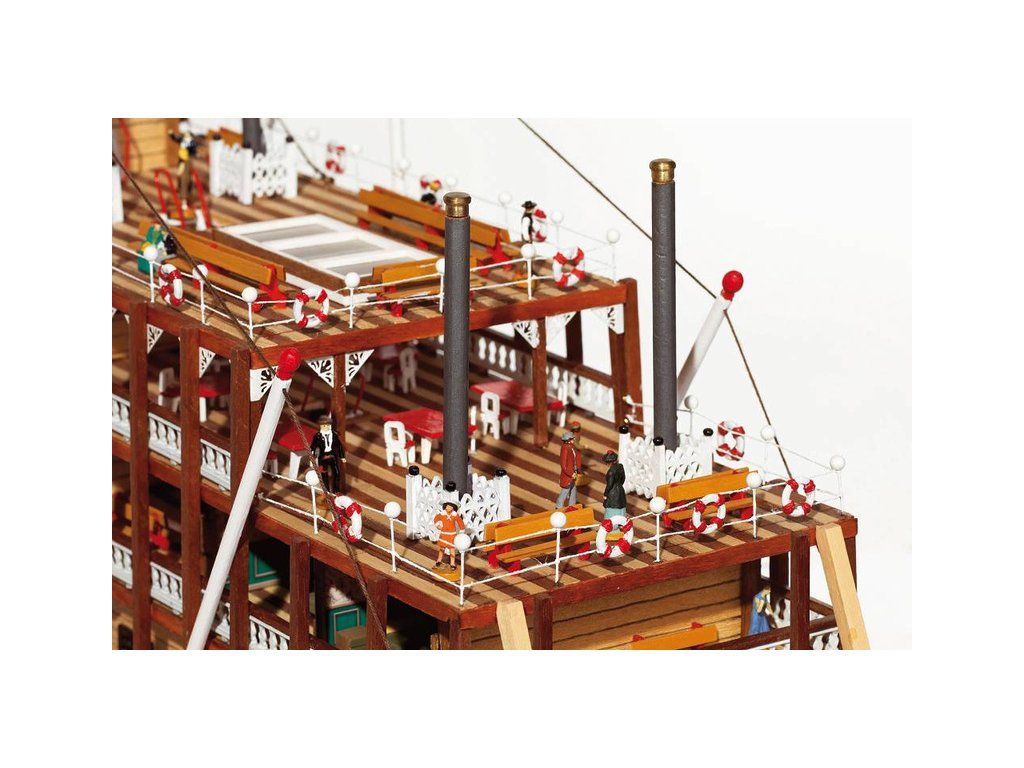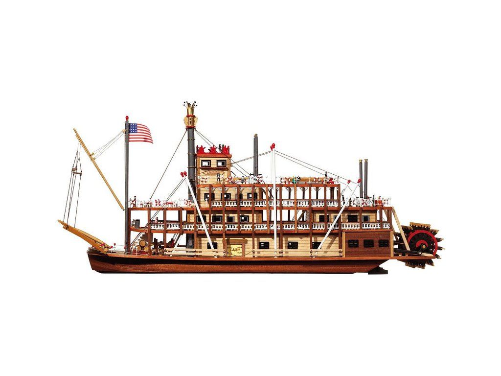 Stavebnice neplovoucího modelu lodi OCCRE Mississippi kolesový parník, v měřítku 1:80. V balení jsou díly pro stavbu - laserem řezané díly, lišty, mosazné fotolepy, lanoví a další. Stavební výkresy a návod.