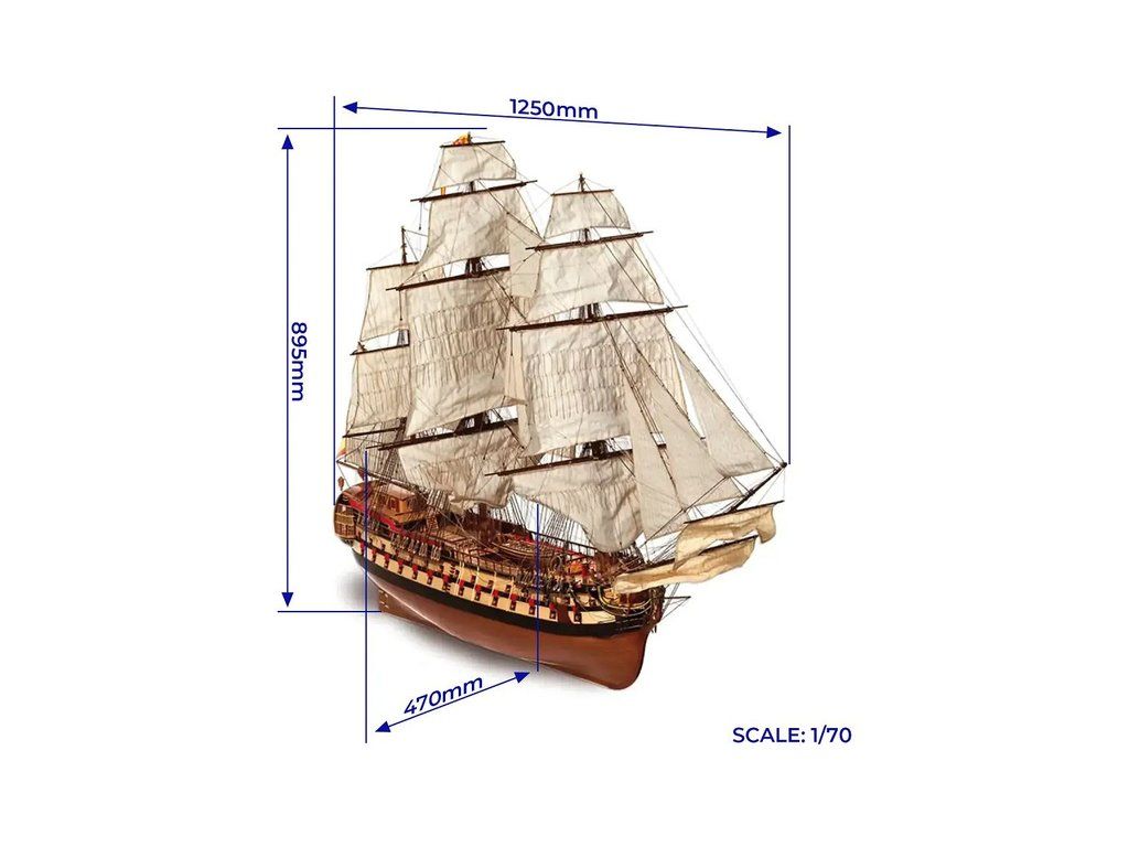 Stavebnice neplovoucího modelu lodi OCCRE Montaňés, v měřítku 1:70. V balení jsou díly pro stavbu + plachty - laserem řezané díly, lišty, mosazné fotolepy, lanoví a další. Stavební výkresy a návod.