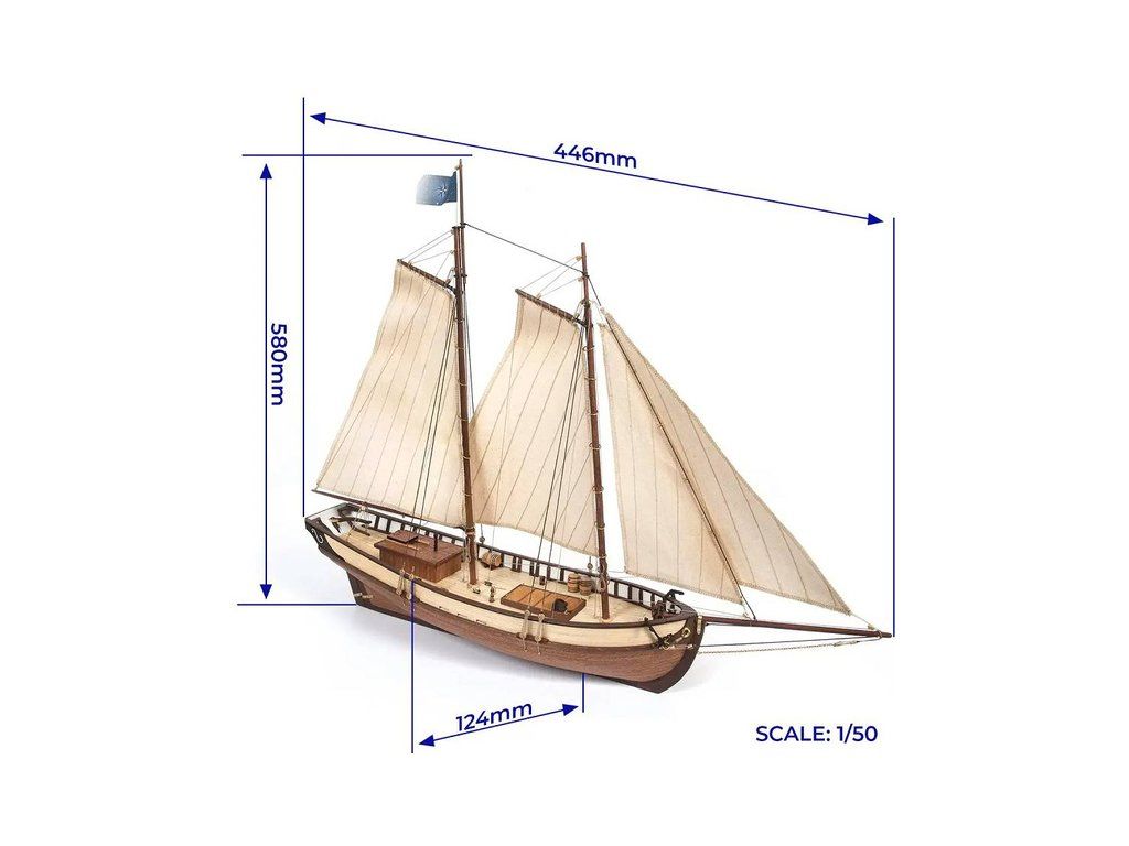 Stavebnice neplovoucího modelu lodi OCCRE HMS Polaris, v měřítku 1:50. V balení jsou díly pro stavbu + plachty - laserem řezané díly, lišty, mosazné fotolepy, lanoví a další. Stavební výkresy a návod.