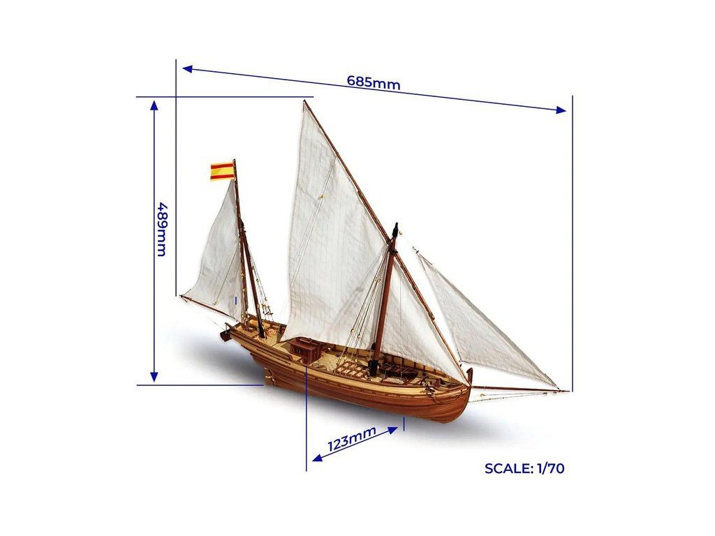 Stavebnice neplovoucího modelu lodi OCCRE San Juan, v měřítku 1:70. V balení jsou díly pro stavbu + plachty - laserem řezané díly, lišty, mosazné fotolepy, lanoví a další. Stavební výkresy a návod.