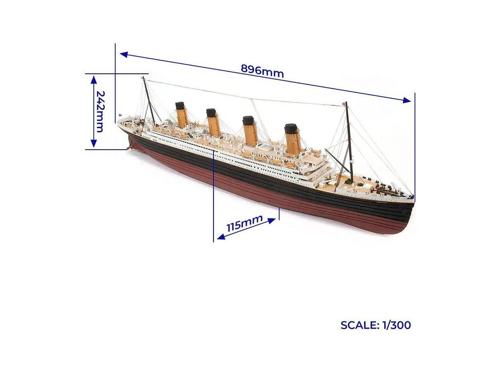 Stavebnice neplovoucího modelu lodi OCCRE Titanic, v měřítku 1:300. V balení jsou díly pro stavbu - laserem řezané díly, lišty, mosazné fotolepy, lanoví a další. Stavební výkresy a návod.