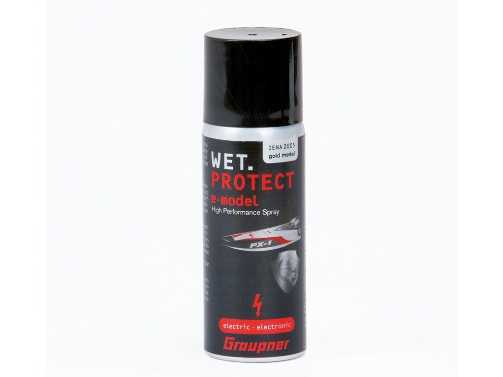 - GRAUPNER wet-protect je jediný sprej na ochranu proti vlhkosti, který prokazatelně a účinně chrání kovové, elektrické a elektronické součástky před jakýmkoliv druhem vlhkosti (výpary, vlhkost vzduchu, kondenzovaná voda, stříkající voda, mlha, déšť/kyselý déšť, slaná voda atd.).