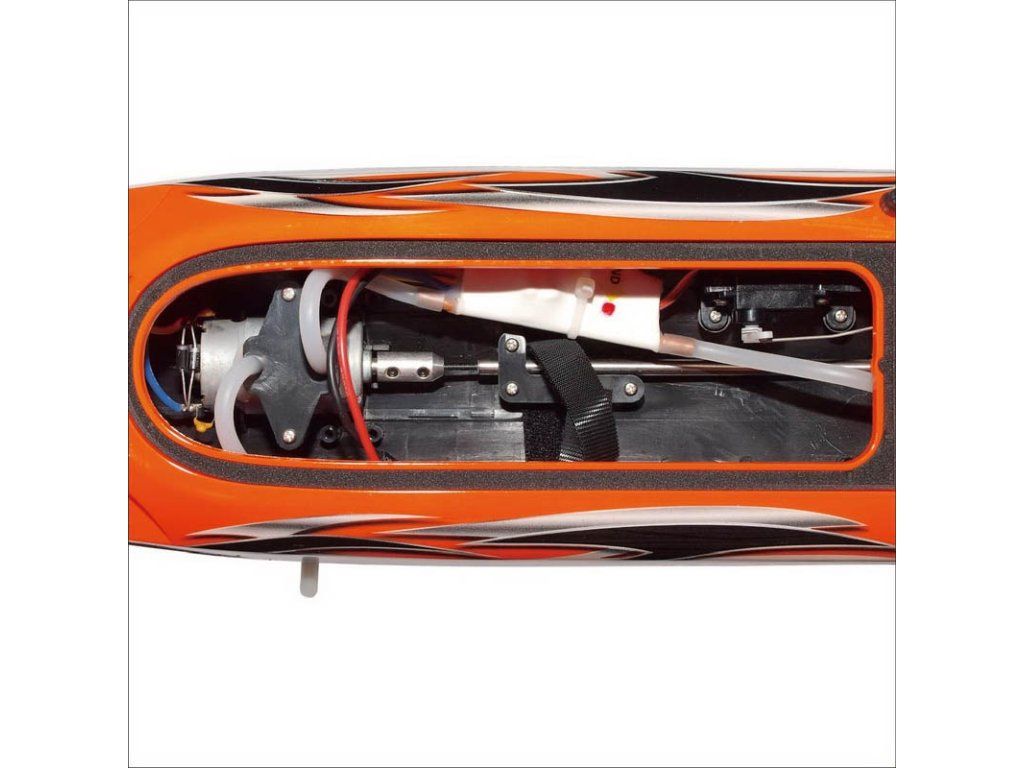 Malý rychlostní člun s elektrickým pohonem s plastovým trupem o délce 358 mm (celková délka 420 mm) pro příjemné rekreační poježdění na malých i větších vodních plochách. Model je dodáván hotový, připravený k vyplutí (stačí nabít a vložit pohonné akumulátory) se stejnosměrným motorem řady 390 s vodním chlazením. Chladící voda je nasávána tryskou na dně lodi, ven z lodi je odváděna z levého boku. Výkon motoru je přenášen pružnou spojkou na lodní hřídel s poloponořeným třílistým šroubem. Směr jízdy je ovládán excentricky umístěným kormidlem, jak je to obvyklé u lodí konstruovaných pro jízdu na okruzích po směru hodinových ručiček. Ostrou zatáčku umožňují "říznout" nastavitelné pomocné ploutve po obou stranách zádi trupu. Ovládání zajišťuje dvoukanálový pistolový vysílač 2,4 GHz, palubní elektronika zahrnuje přijímač kombinovaný s elektronickým regulátorem otáček chráněný proti proniknutí vody a 9 g servo kormidla. Ovládání kormidla i otáček motoru je plně proporcionální.