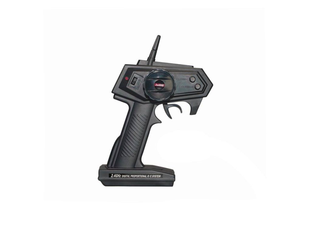 RC set obsahuje: hotový model připravený k plavbě, dvoukanálový pistolový vysílač, pohonný akumulátor 7,4V/800 mAh, síťový nabíječ pro pohonný akumulátor, 9V destičkovou baterii, plastový stojánek a návod k obsluze.