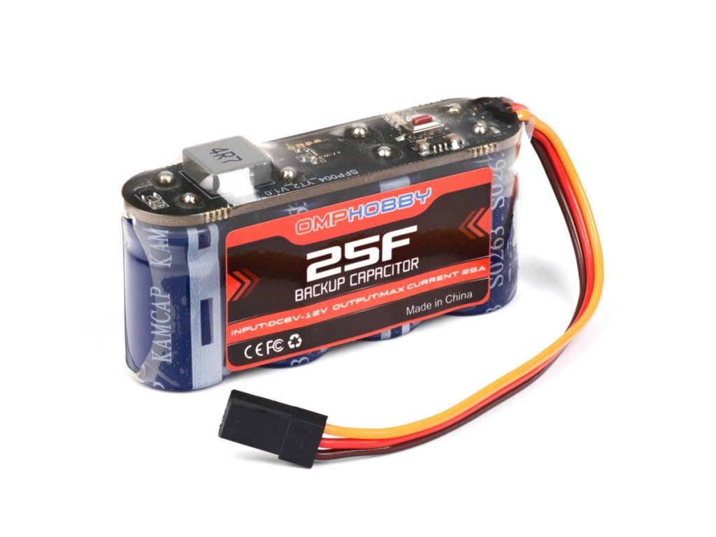 Sada filtračního superkondenzátoru 25 F/12 V pro filtraci/krátkodobé zálohování napájecího napětí palubní elektroniky v modelech používajících silná a rychlá serva s vysokým odběrem. Ideální pro RC vrtulníky a obří modely letadel.Doplňkové parametry