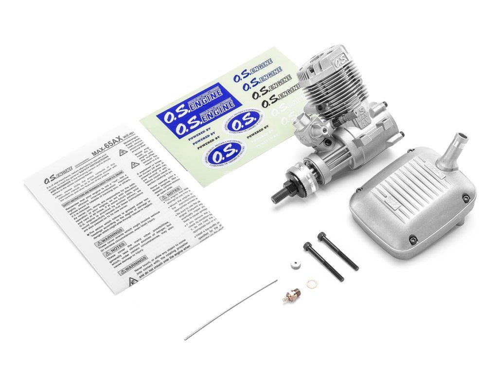 Sada motoru obsahuje: motor MAX 65AX s RC karburátorem 61D, tlumič výfuku typ E-4050, sada prodloužení hlavní jehly, žhavící svíčku No. 8, návod k obsluze.