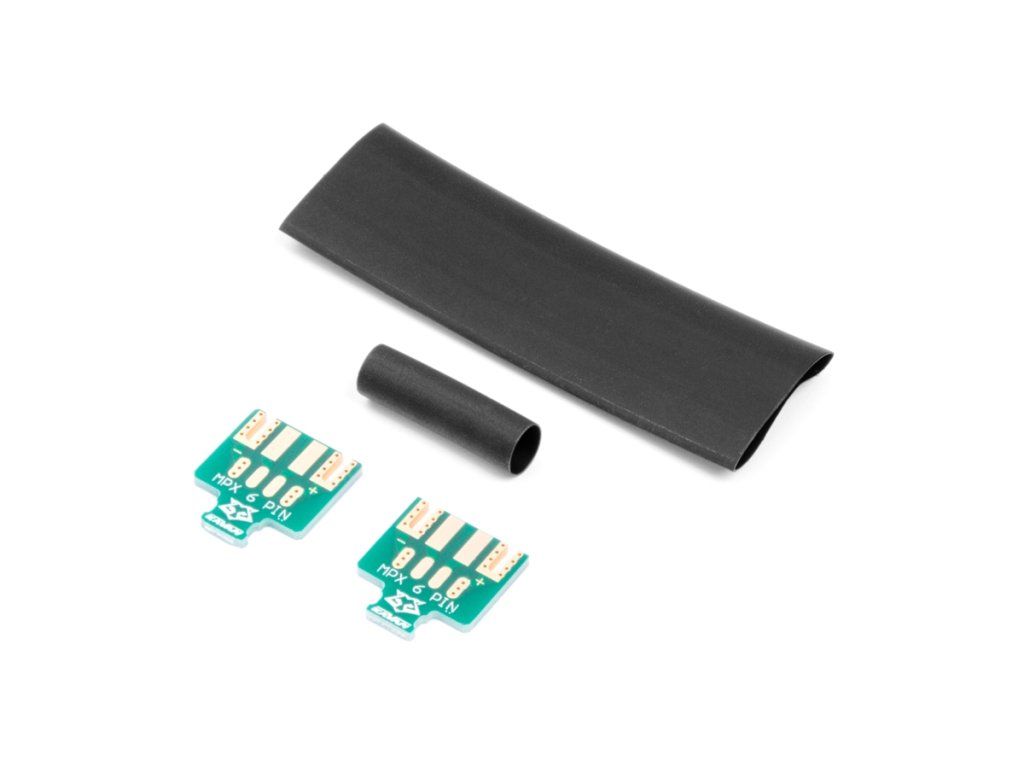 Pájecí PCB destička pro pohodlné připájení servokabelů k MPX 6pin konektoru. Rovněž usnadňuje manipulaci při rozpojování a snižuje riziko utržení kabelů od konektoru. Balení obsahuje 2ks PCB destičky a dvě smršťovací bužírky vhodných průměrů.Doplňkové parametry