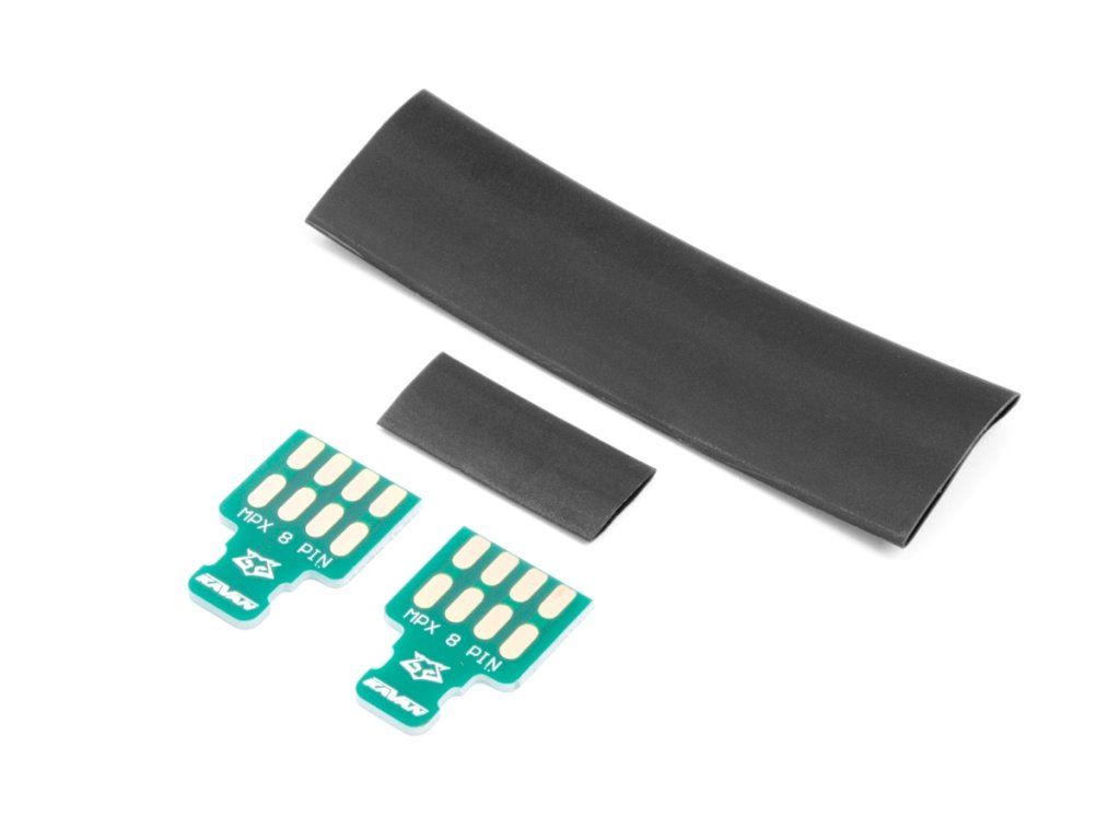 Pájecí PCB destička pro pohodlné připájení servokabelů k MPX 6pin konektoru. Rovněž usnadňuje manipulaci při rozpojování a snižuje riziko utržení kabelů od konektoru. Balení obsahuje 2ks PCB destičky a dvě smršťovací bužírky vhodných průměrů.Doplňkové parametry