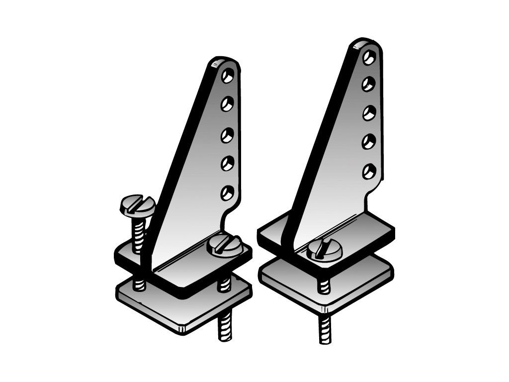 Pár plastových pák kormidel tvaru "T" o délce 28 mm s příložnými deskami a 16 mm upevňovacími šrouby.