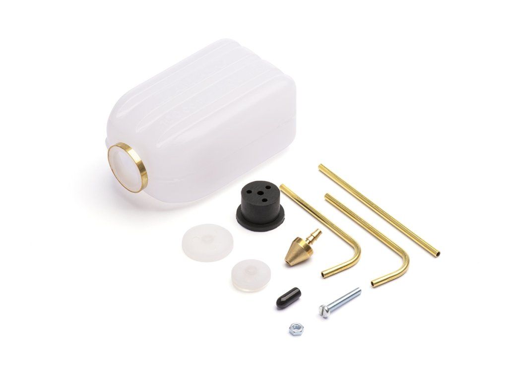 Speciální výrobní proces eliminuje možnost tenkostěnných oblastí v nádrži. Tyto nádrže jsou vhodné pro přetlakové systémy. Mosazný kroužek na hrdle nádrže zabraňuje prasknutí, ke kterému může dojít u některých nádrží s expanzní krytkou. Obdélníkový tvar umožňuje maximální využití prostoru a zabraňuje nežádoucímu kroucení. Matice na zadním nylonovém kotouči zabraňuje vytržení závitu a úniku paliva. Těžký kovový sací kužel zaručuje rovnoměrný průtok paliva. Plynovou páku lze snadno vést v šesti dutých drážkách na bočních stěnách nádrže (kromě obj. č. KAV0031B). Obsahuje předem ohnuté mosazné trubky pro rychlou montáž. Pro palivo do žhavicích zapalovačů nebo benzín (pouze obj. č. KAV0031B je výhradně pro palivo do žhavicích zapalovačů). Pro benzín použijte náhradní uzávěr, obj.č. KAV0032.1.