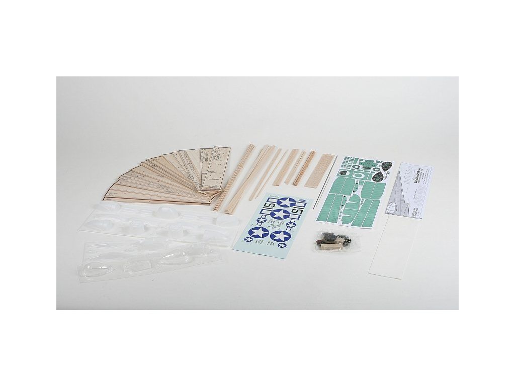 Stavebnice obsahuje: balsové předseknuté díly, balsové nosníky, vakuově lisované maketové díly (kryt motorů, motory...), čiré acetátové výlisky pilotní kabiny a bočních "boulí", plastová kola, ocelovou strunu na podvozek a další drobné díly, potahový papír, aršík mokrých obtisků, stavební plán.