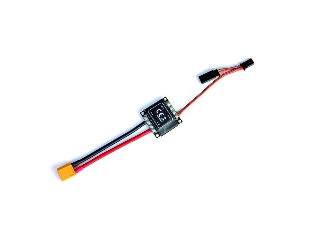 Deska je vybavena konektorem XT-60. Díky tomu jsou možné trvalé proudy až 60 A – krátkodobé proudové špičky až 100 A nepředstavují žádný problém.