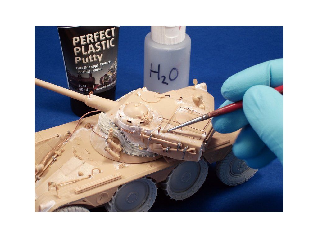 Perfect Plastic Putty je jednosložkový, rychleschnoucí tmel husté konzistence na akrylátové bázi. Je ideální na lepení nebo vytváření maketových doplňků v plastikovém modelářství. Po vytvrzení je tmel snadno brousitelný. Má snadné použití, neztvrdlý tmel lze omýt vodou.