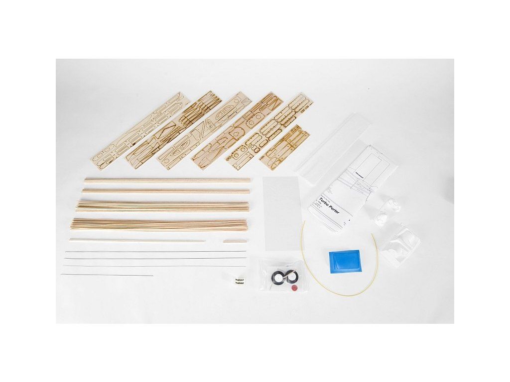 Stavebnice obsahuje: balsové laserem vyřezávané díly, balsové nosníky, vakuově lisované díly (kryt motoru...), čirou plastovou fólii na "zasklení" kabiny, ocelovou strunu na podvozek a další drobné díly, lehká pěnová kola, barevný potahový papír, aršík samolepek, stavební plán.