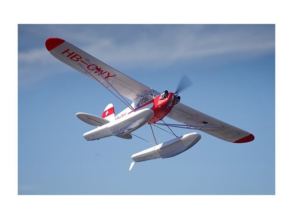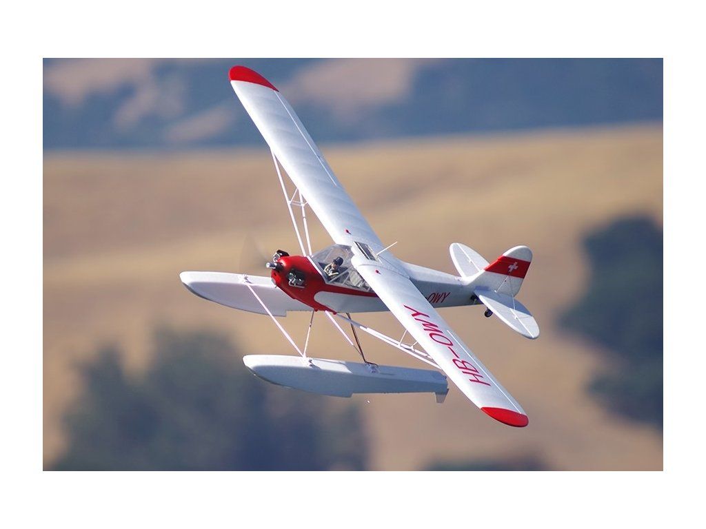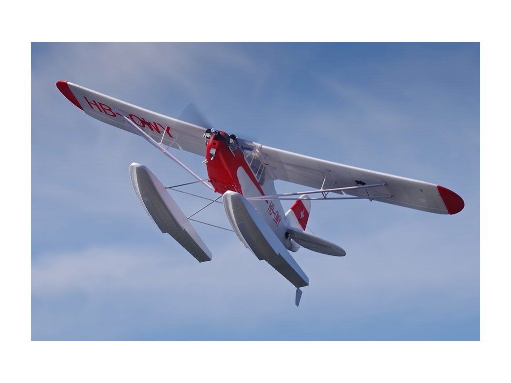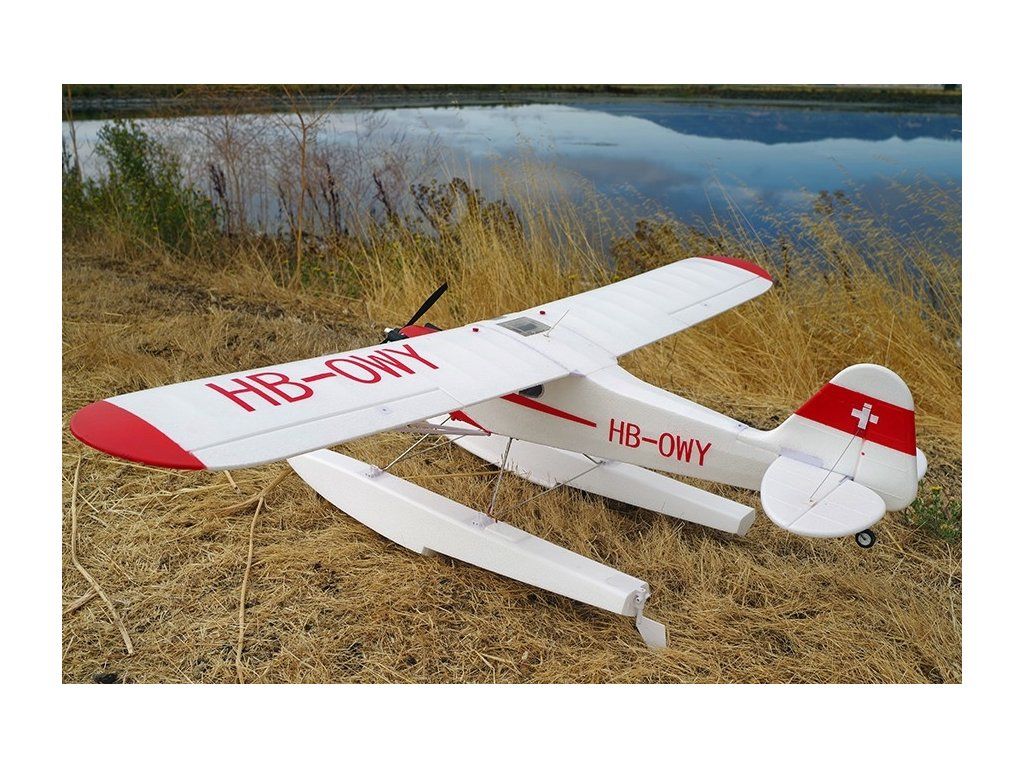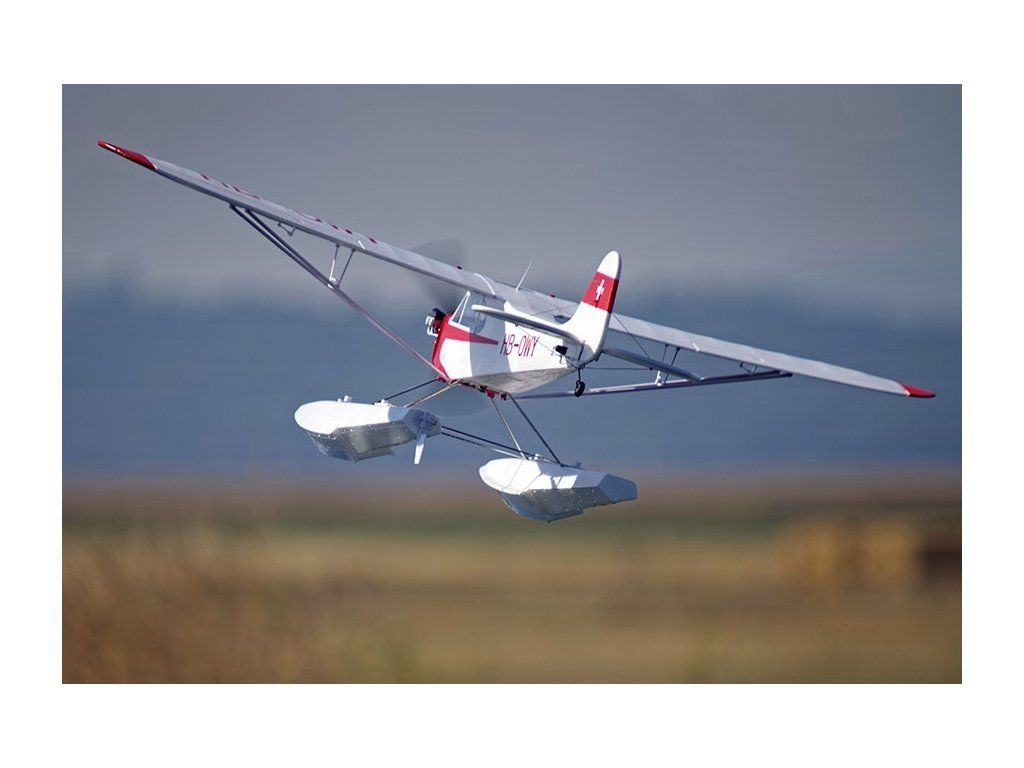 Plováky jsou z pěnového EPO s drátovými vzpěrami; levý plovák je opatřen vodním kormidlem, které ovládá zvláštní servo uložené uvnitř. Při pojíždění, vzletu i přistání na vodě je opravdu oceníte!
