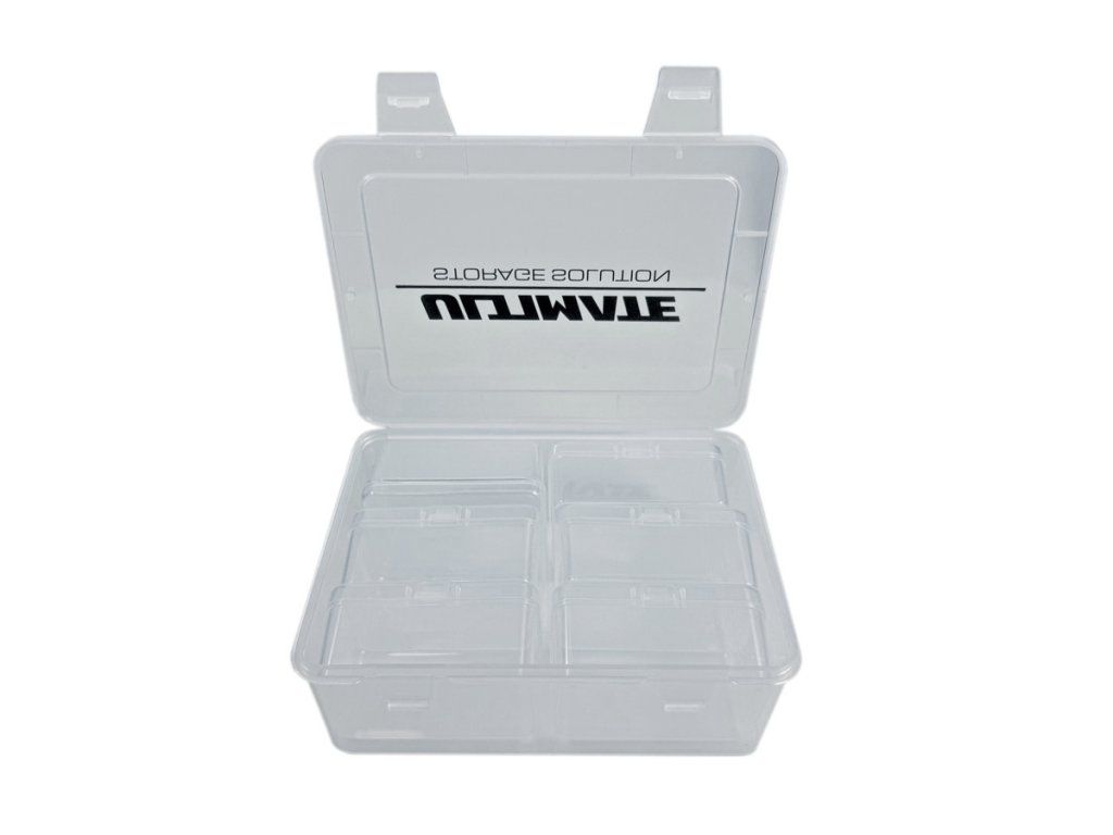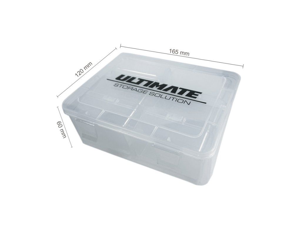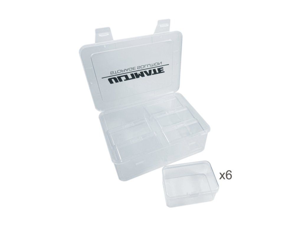 Pevný, odolný, průsvitný box o rozměrech 165x120x60 mm obsahuje 6 vnitřních boxů o rozměrech 75x50x35 mm se samostatným uzamykatelným víkem pro rychlé a snadné uložení dílů.