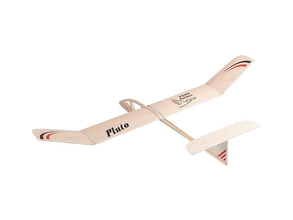 Velké celobalsové házedlo s výbornou klouzavostí a velmi jednoduchou stavbou. Je ideální jako úplně první model, který postavíte během několika desítek minut. Díky přesným CNC vyřezávaným dílům, částečně slepenému trupu a křídlu s profilem zakřivené desky s předlepenými profilovými žebry nebudete potřebovat žádné nástroje, pouze acetonové lepidlo (Kanagom, L-510, UHU-hart apod.) a špendlíky. Křídlo je k trupu upevňováno gumovými oky, takže Pluto je i přes větší rozpětí křídla skladné; klidně si jich můžete do auta na nedělní výlet nebo dovolenou přibalit třeba několik.