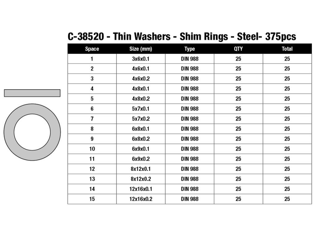 Podložky - sada/box - 3 až 12mm - ocelové, 375 ks.