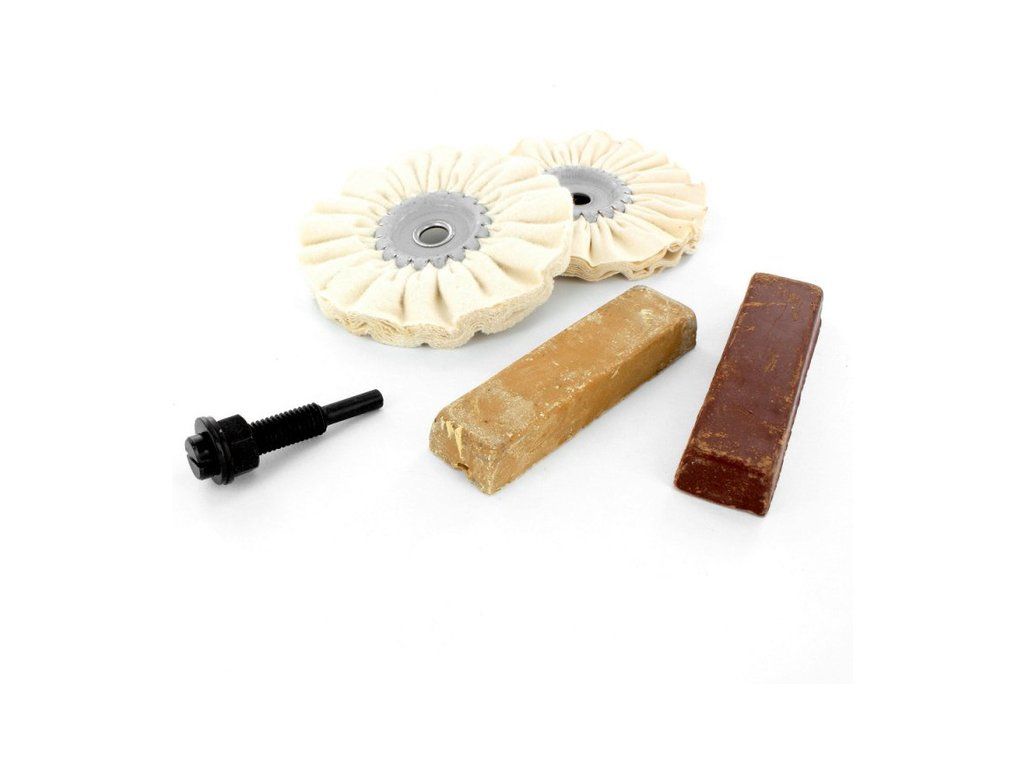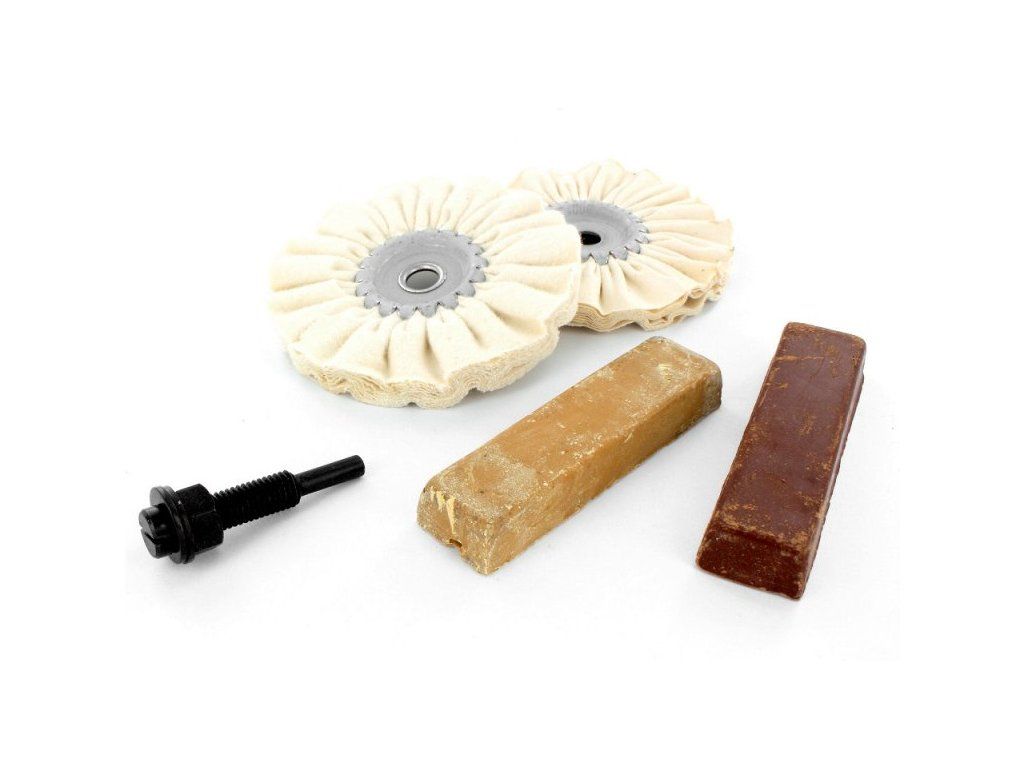 Sada na leštění plastů Policraft lešticí sada DIY, obsahuje kotouč 100mm tvrdý, kotouč 100mm měkký, upínací stopku, hnědou tyčinku pro hrubý úběr a tyčinku se směsí pro vysoký lesk. Vytvářejte profesionální povrchovou úpravu povrchů různých typů plastu, laminátu, bakelitu apod., s touto sadou.