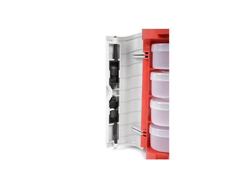 Snadno se zapíná pomocí klipů, což umožňuje praktické a bezpečné uložení. Stačí stisknout dva klipy k sobě, aby se uvolnila bezpečnostní západka, a jednotlivé boxy můžete vyjmout. Tento kufřík TC PIT CASE obsahuje vše, co vám na trati zajistí skutečný pořádek.
