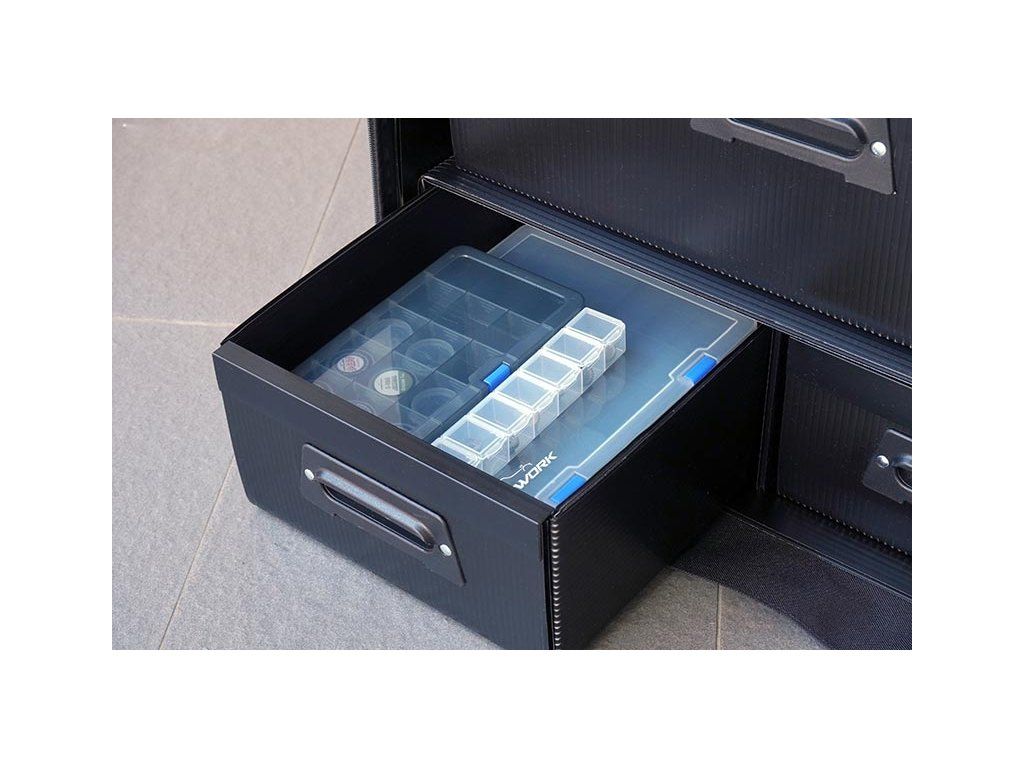 - 2 střední zásuvky na díly a příslušenství, vyrobené z pevného plastového kartonu