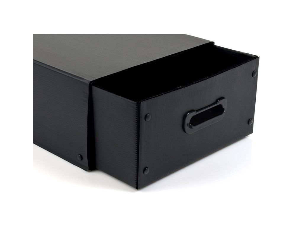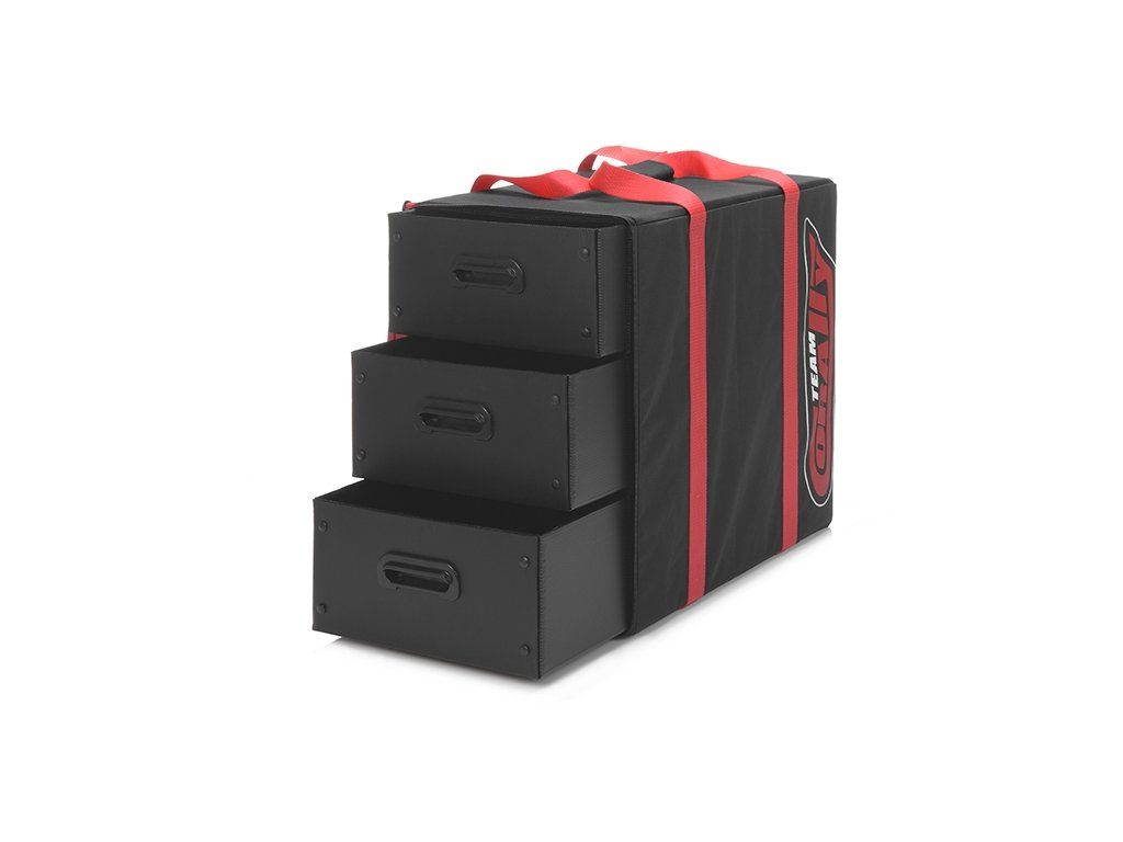 Přepravní taška se dvěma šuplíky pro přepravu příslušenství k RC autům nebo jeho příslušenství. Rozměr šuplíku 30 x 48 x 15 cm, rozměr tašky je 54 x 51 x 33 cm. Šuplíky jsou vyrobeny z plastového kartonu. Úchyty šuplíků jsou vyrobeny z plastového výlisku. Každý šuplík je vsazen do kartónového obalu, čímž je zamezeno jeho vysypání.Doplňkové parametry