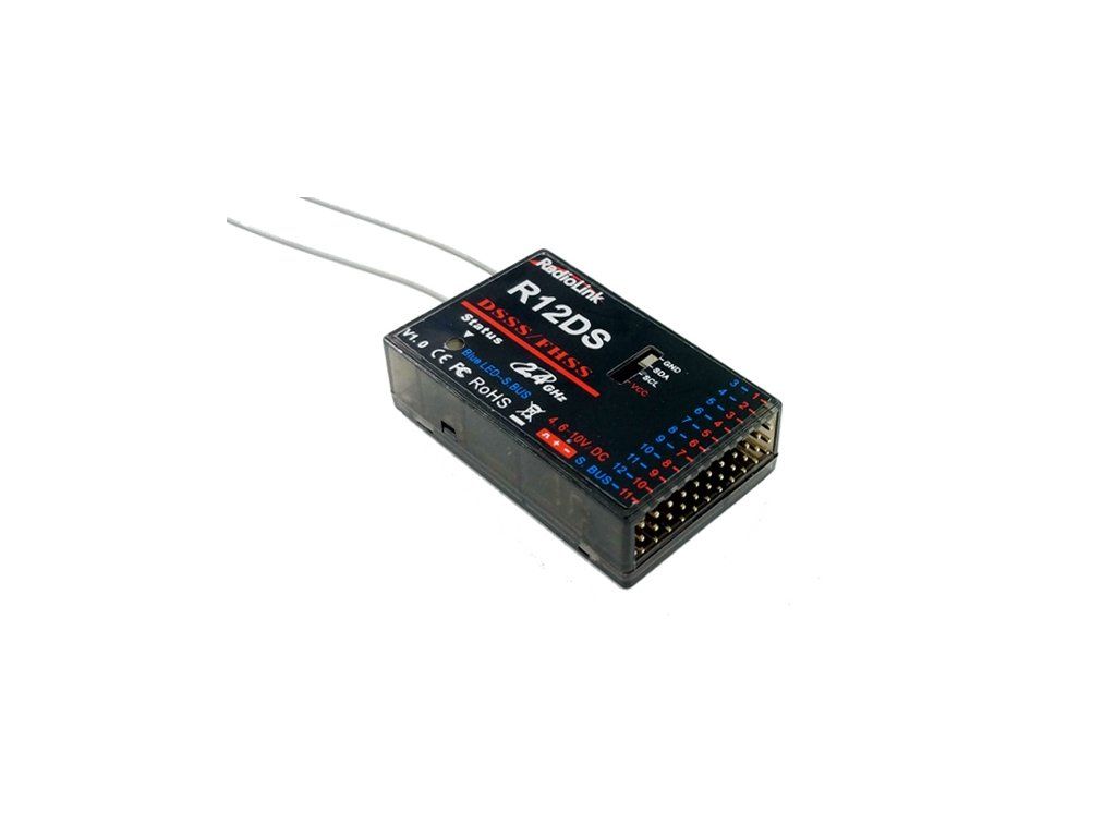 Radiolink R12DS 2,4GHz je 12-kanálový telemetrický přijímač se synchronním přenosem DSSS a FHSS s frekvenčním přeskokem kompatibilní s vysílači Radiolink AT9, AT 9S, AT10 a AT10II (vysílače AT9, AT 9S a AT10 je možno upgradovat na 12 kanálů aktualizací jejich firmwaru, který si můžete stáhnout na stránkách výrobce http://radiolink.com.cn/doce/at10upgraded.html, AT10II je 12-kanálový již v základní verzi). Přijímač je kompatibilní s telemetrickými moduly PRM-01 a PRM-02.