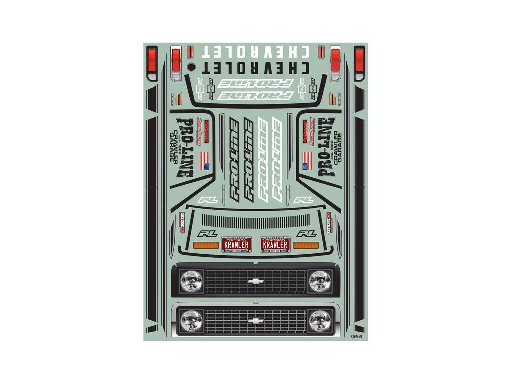 Balení obsahuje čirou karoserii Chevrolet K-10, masku oken, arch samolepek, přestříkávací fólii.