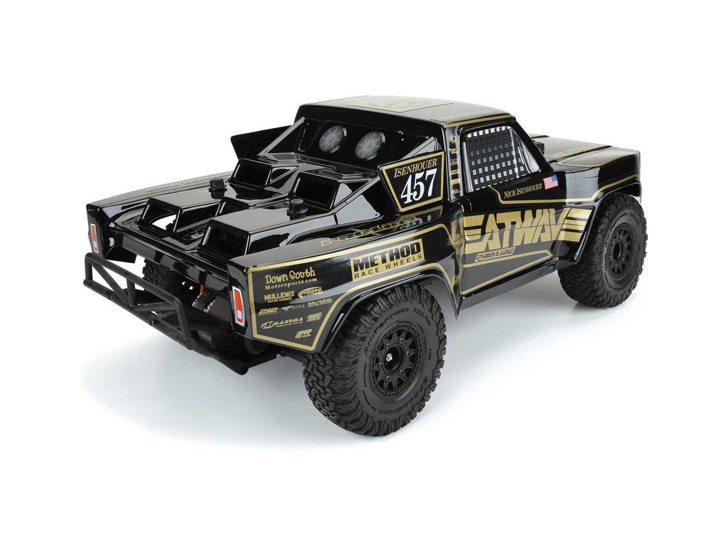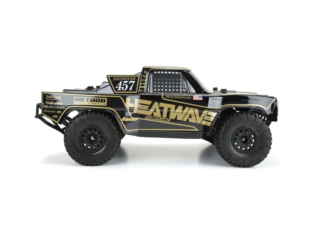 Pro-Line karosérie černá Ford F-100 Heatwave, pro RC modely aut Short Course v měřítku 1:10, rozvor 325mm, délka 528mm, šířka 295mm. Vyrobeno z odolného lexanu.