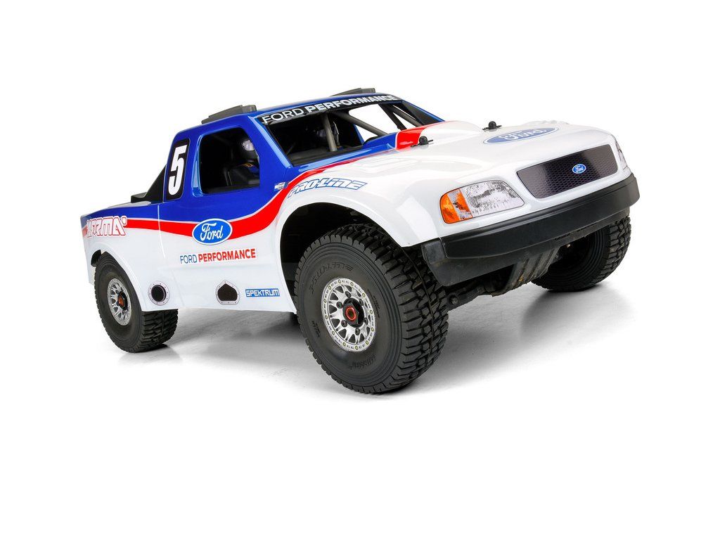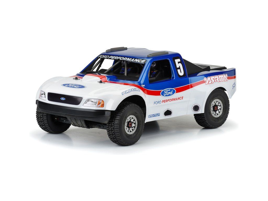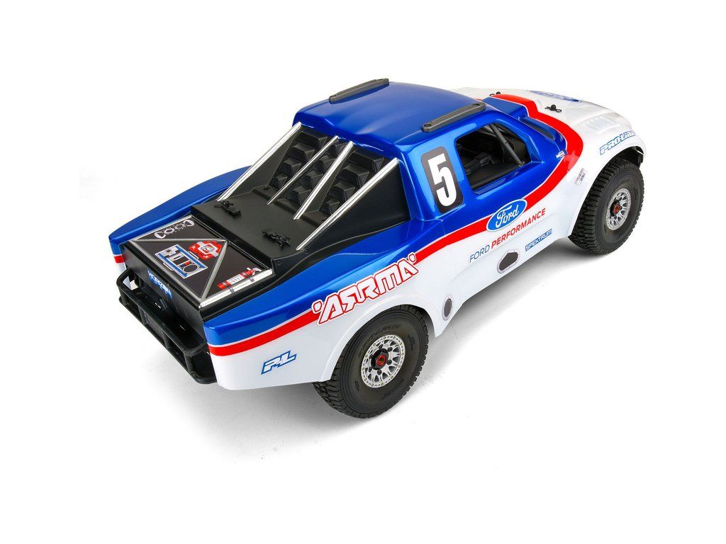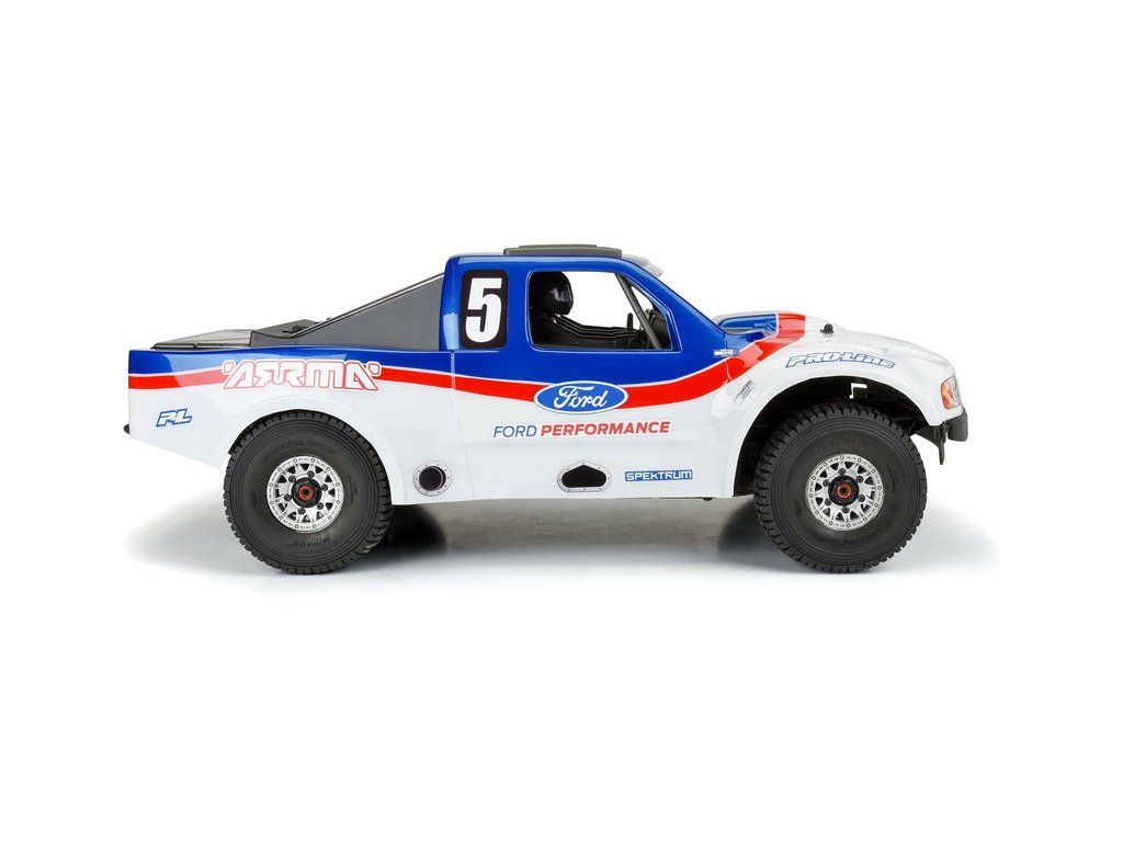 Pro-Line oficiálně licencovaná karosérie v měřítku 1:7 z roku 1997 Ford F-150 Trophy nenabarvená: pro RC modely aut Arrma Mojave 6S. Rozvor 419mm, délka 704mm, šířka 349mm, výška 196mm. Vyrobeno z odolného lexanu, montážní příslušenství.