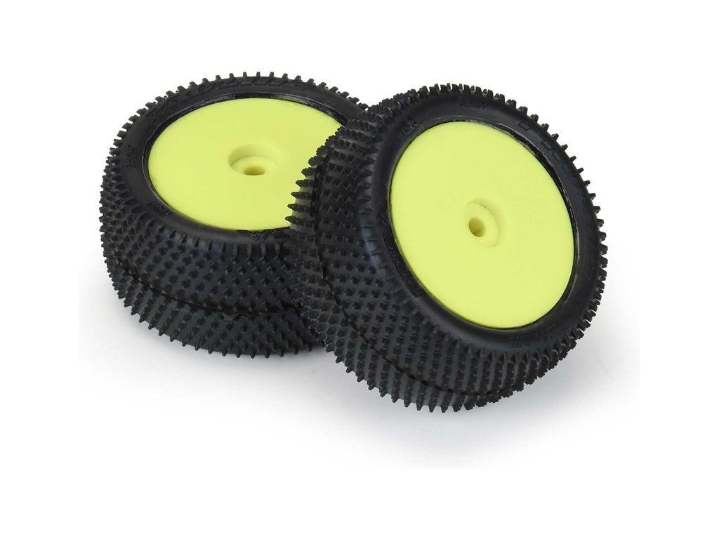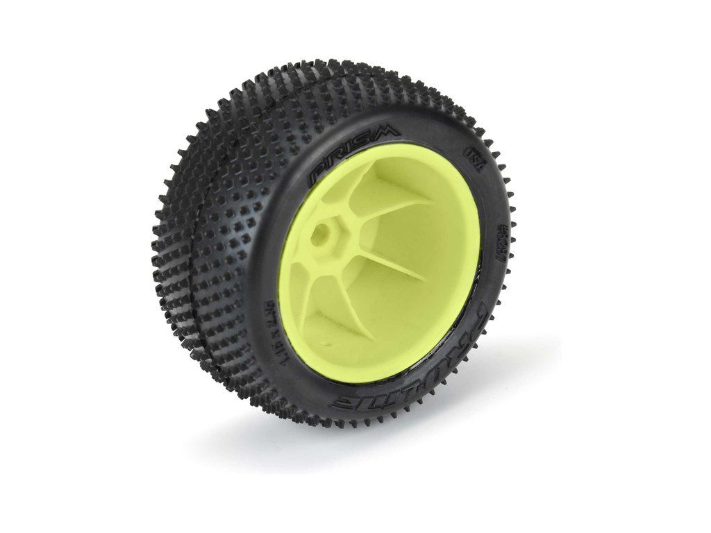 Pro-Line kolo 1:18, pneu Prism Carpet zadní, disk H8 žlutý (2) (Losi Mini-B)