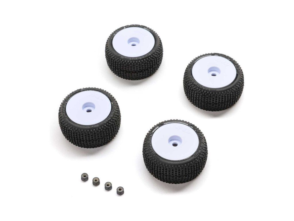Kompletní kola Pro-Line pro RC modely aut 1:28. Disk ve stylu závodní Truggy má bílou barvu. Pneumatiky Blockade s kolíky. Ideální pro RC model auta Losi Micro-T.