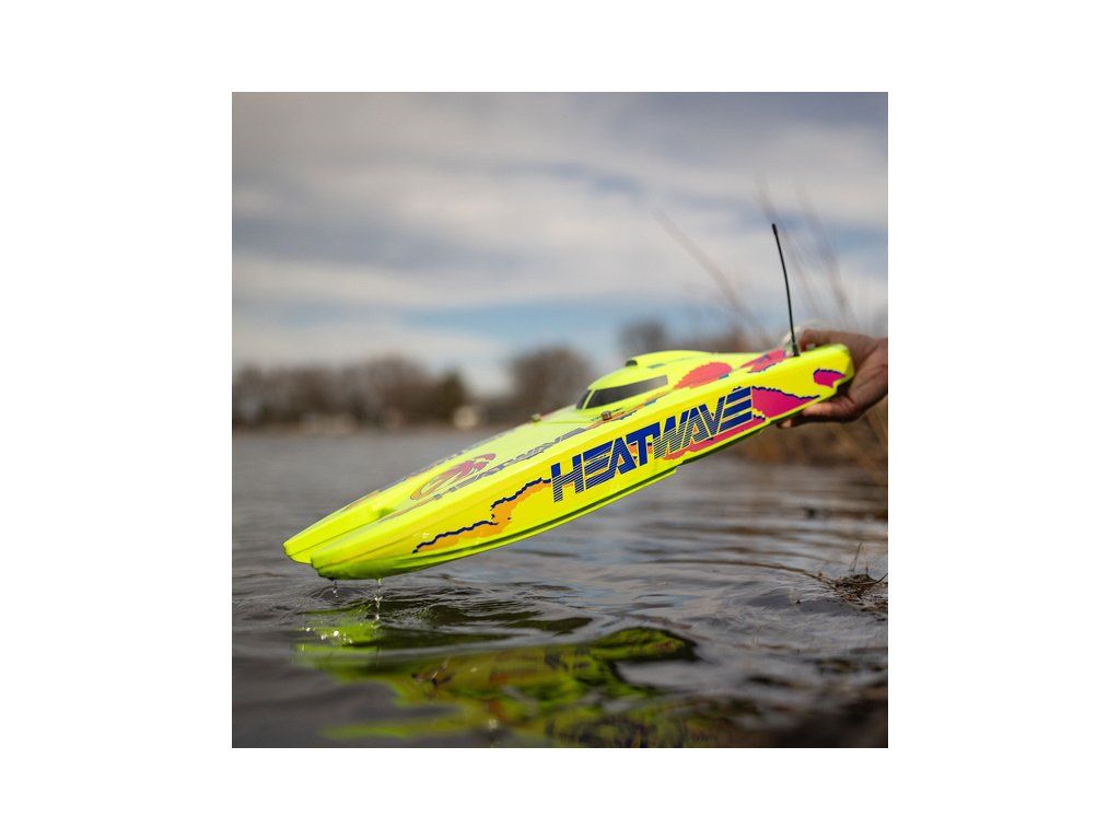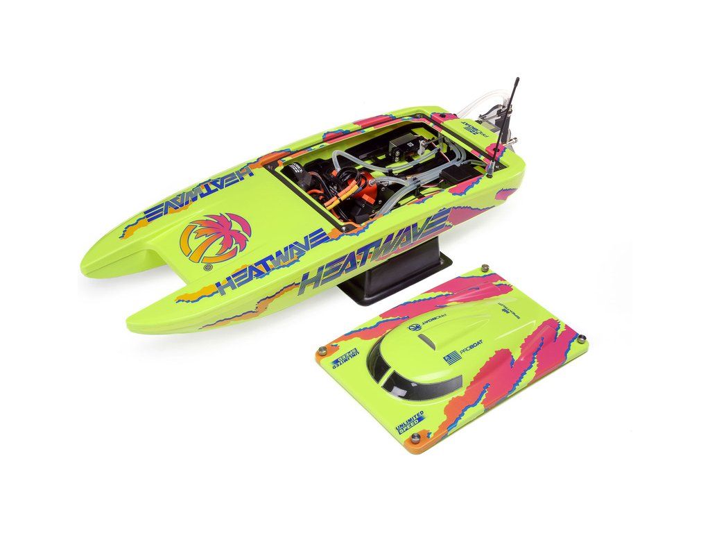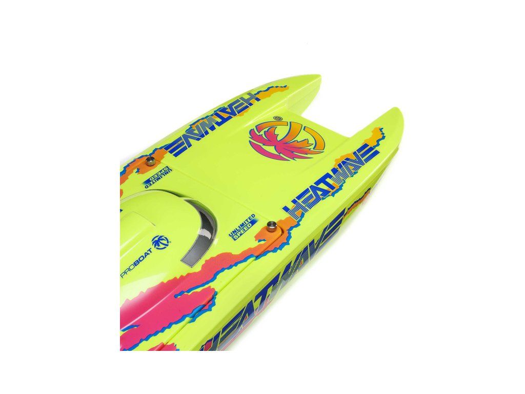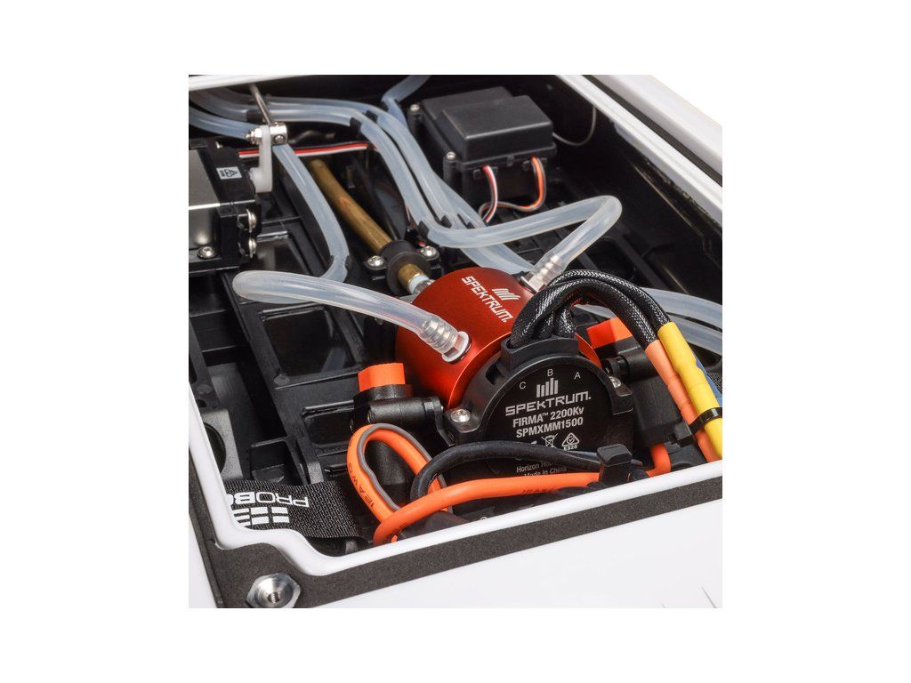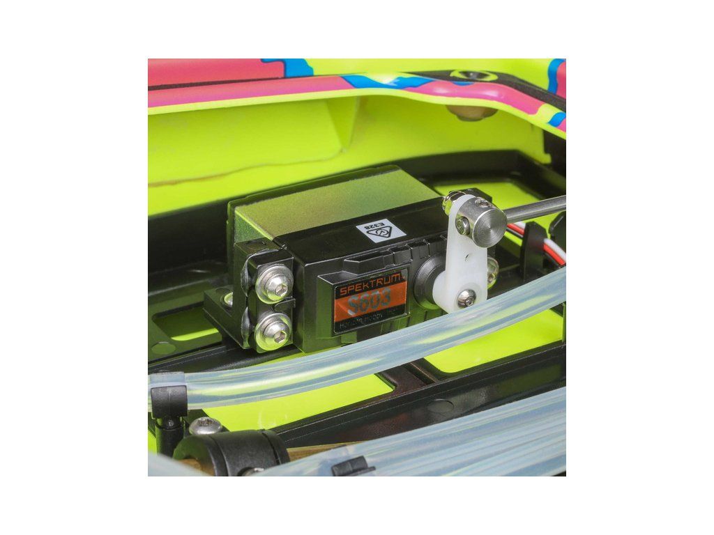 Rychlostní RC model katamaránu Proboat Blackjack 24" V2 s výkonným střídavým pohonem Spektrum Firma 4S a rychlostí až 48 km/h. Snadná instalace baterií do trupu, zjednodušené mazání lodní hřídele, odklopné kormidlo, proti poškození, 2kanálový vysílač SLT2 2,4GHz.