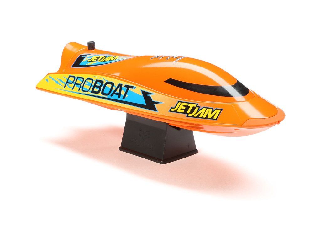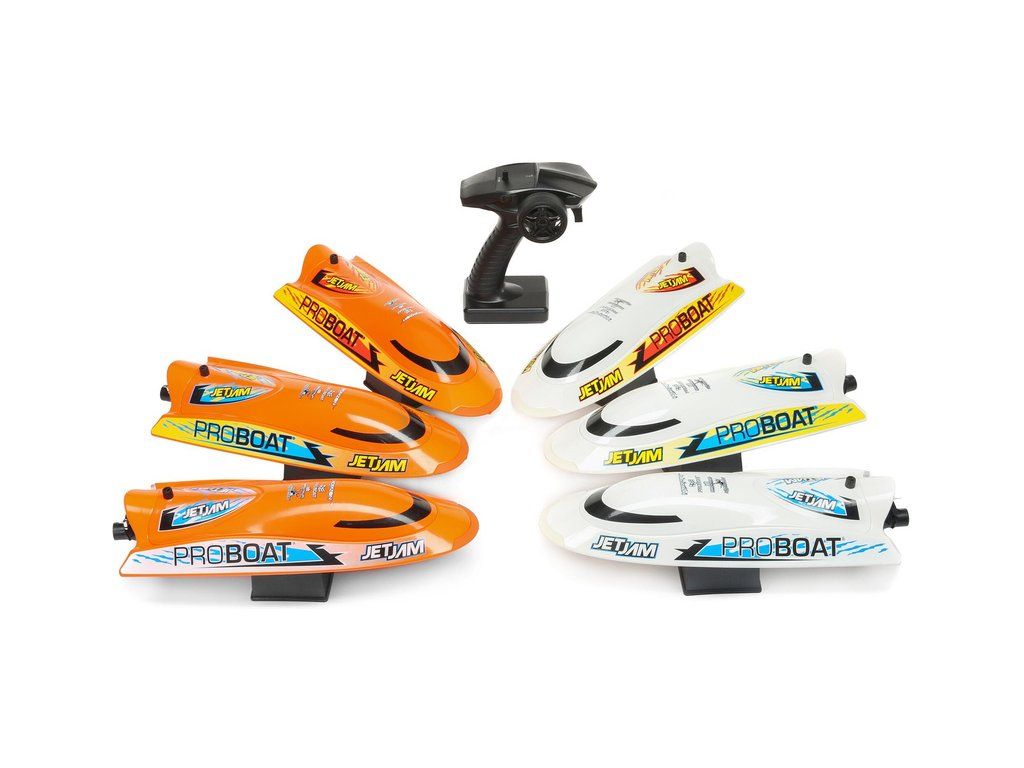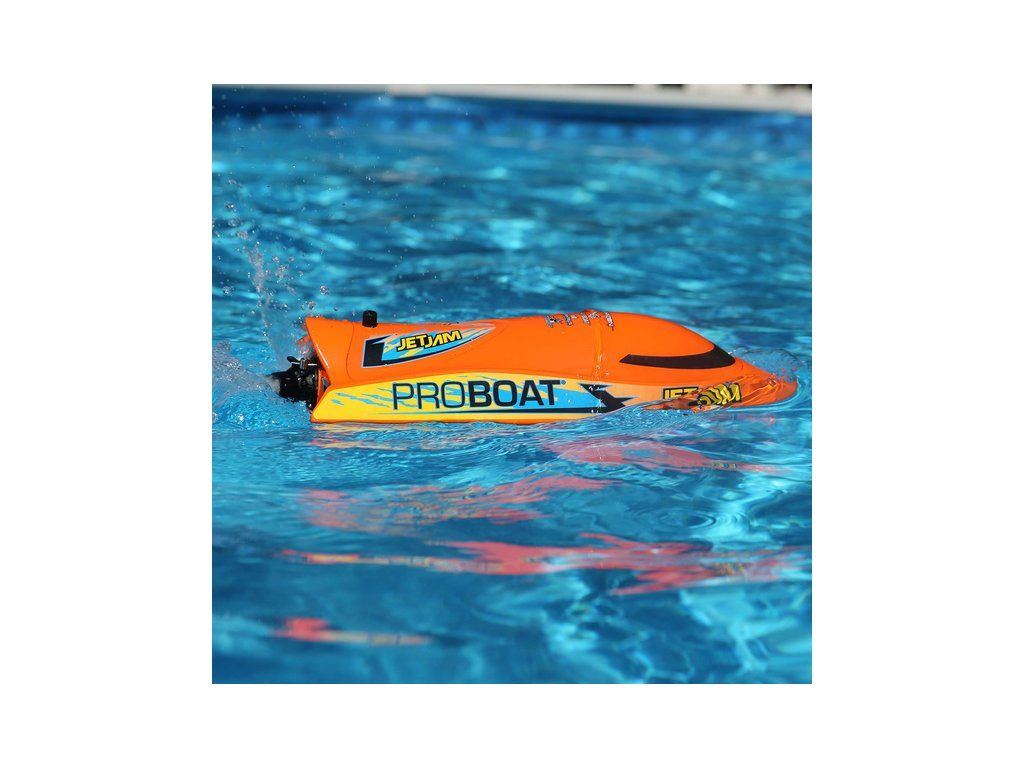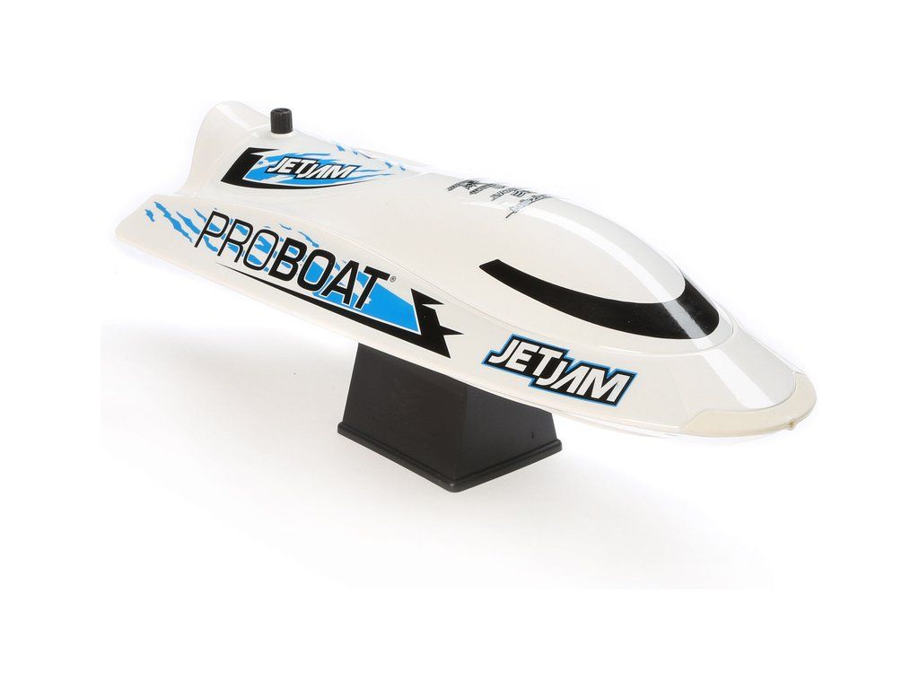 Obsahem balení je kompletně sestavený model lodi Proboat Jet Jam 12 Pool Racer s nainstalovanými komponenty: Motor stejnosměrný Tazer 390 22T, přijímač s regulátorem Horizon, servo. Dále je obsažen Vysílač 2.4GHz Horizon, akumulátor LiIon 1500mAh 7.4V, USB nabíječ, 4x AA baterie do vysílače, síťka pro vodní pólo, návod CZ a manuál EN, DE, FR, IT.