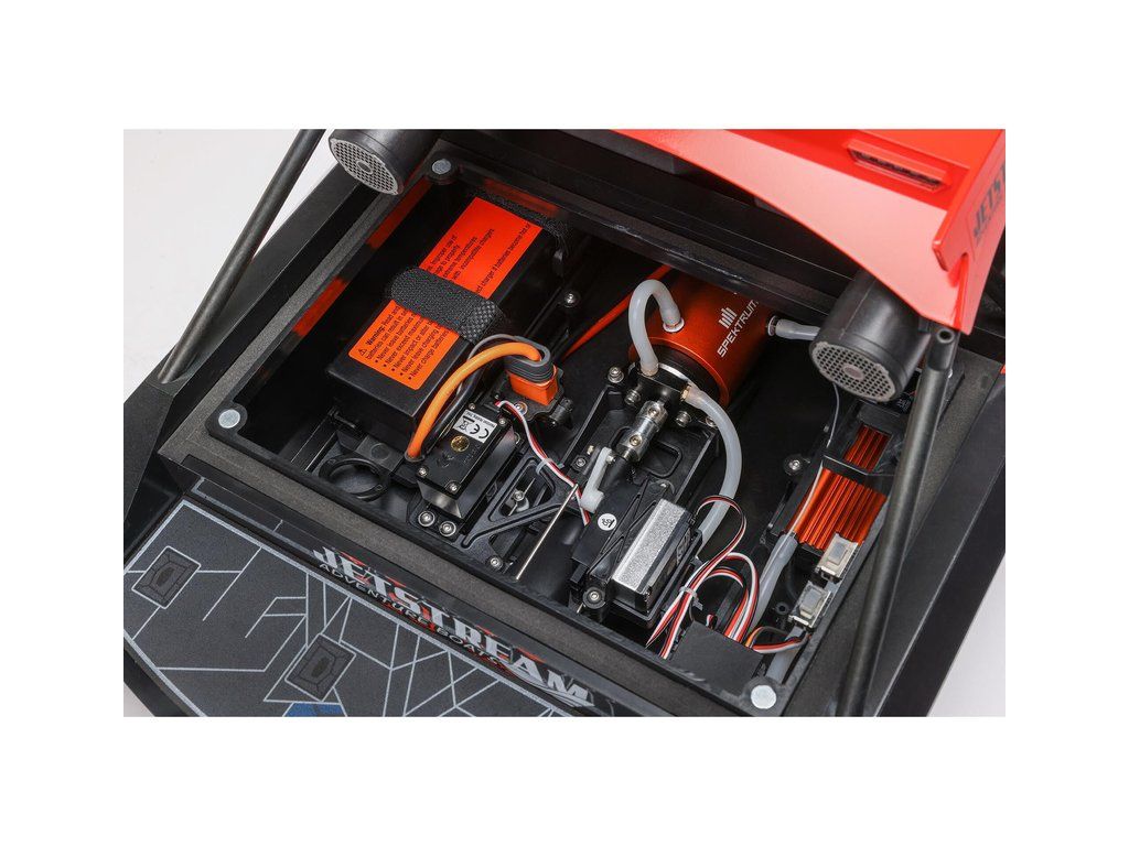 Rychlý a extrémně obratný RC model lodi roboat Jetstream 24" Jet Boat s pohonem pomocí vodní trysky. Bláznivé kousky umožňuje provádět revers tahu a zesílené dno lodi. Licencovaný vzhled livreje Shreddy a MoJo. Detailní kabina s předním i zadním LED osvětlením. RC souprava SLT3.